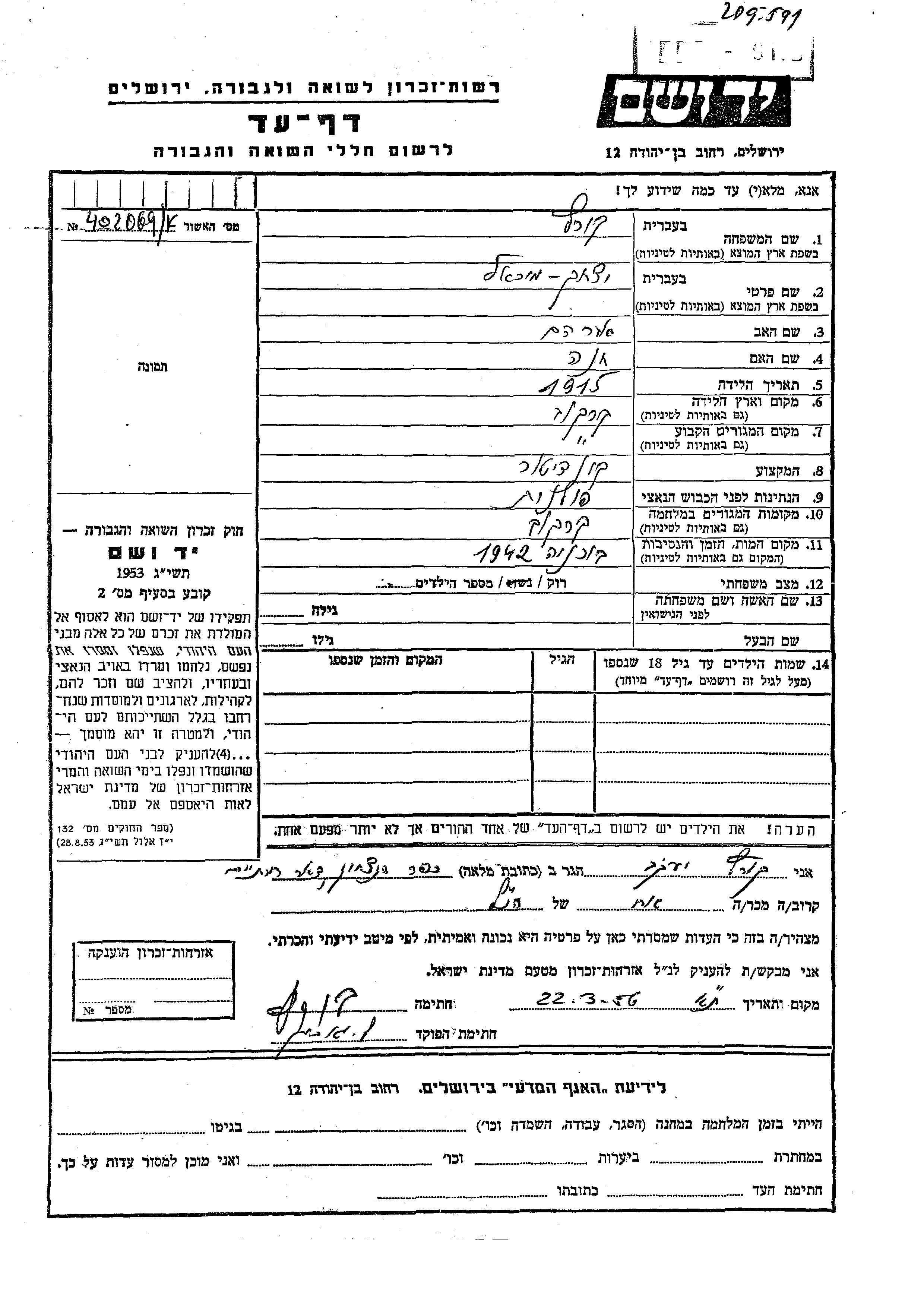Яд Вашем - Листы свидетельских показаний Мемориального фонда