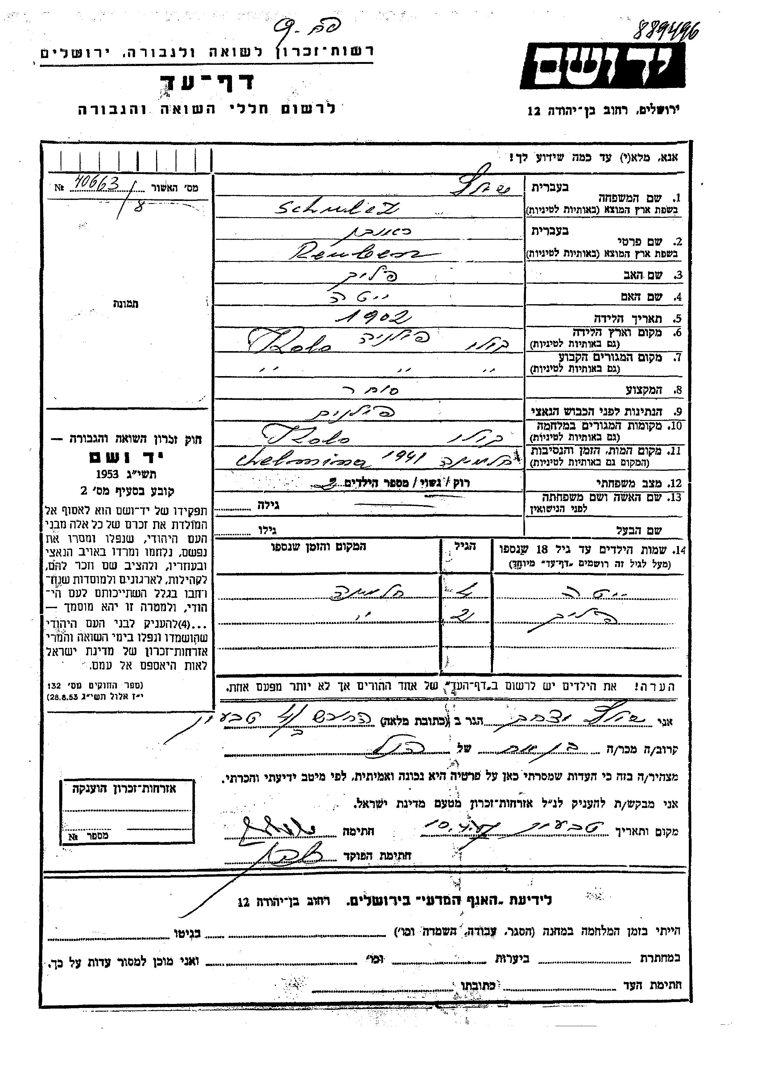 Яд Вашем - Листы свидетельских показаний Мемориального фонда