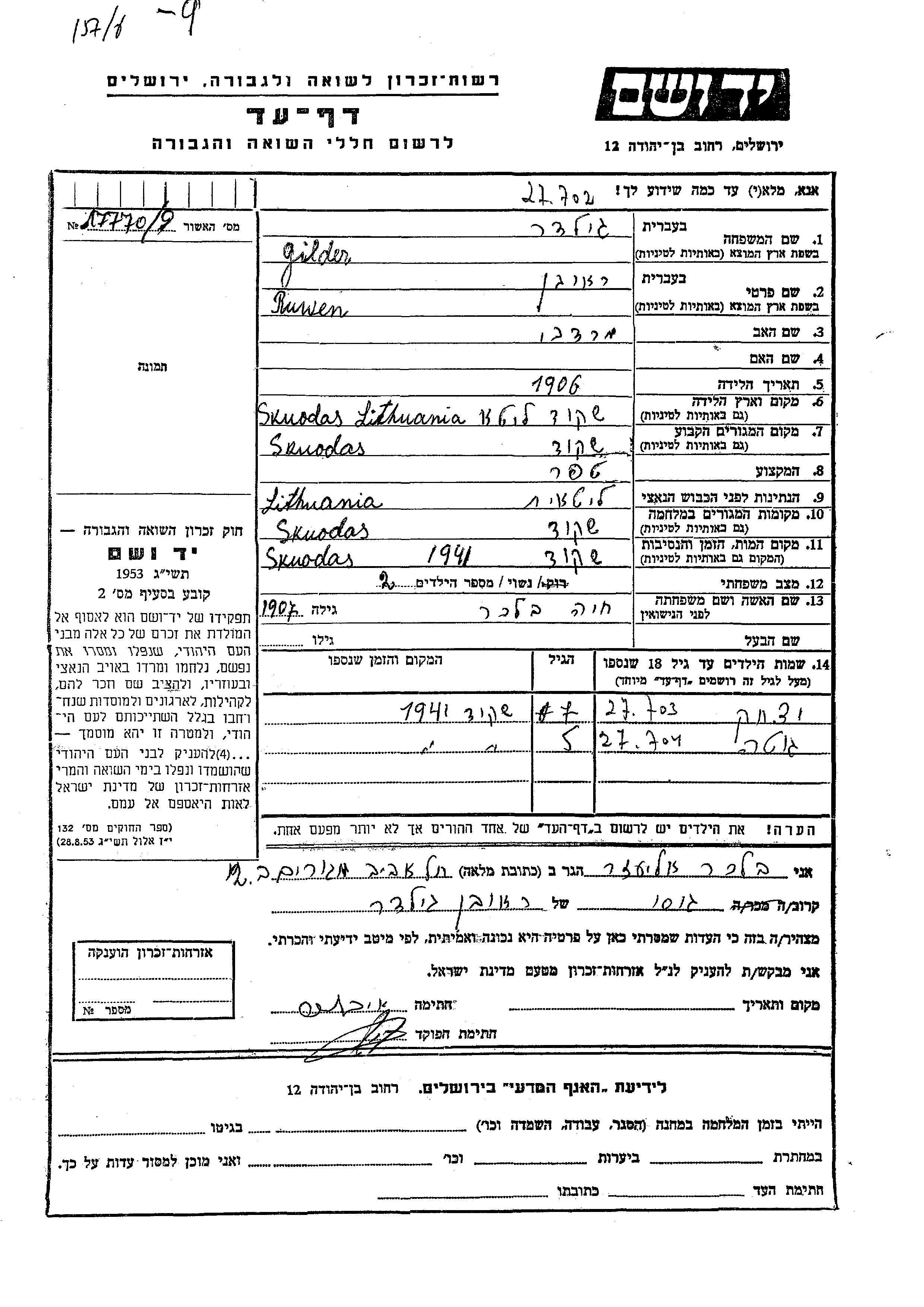 Гильдер Рувен 1906 Скуодас, Литва Лист свидетельских показаний