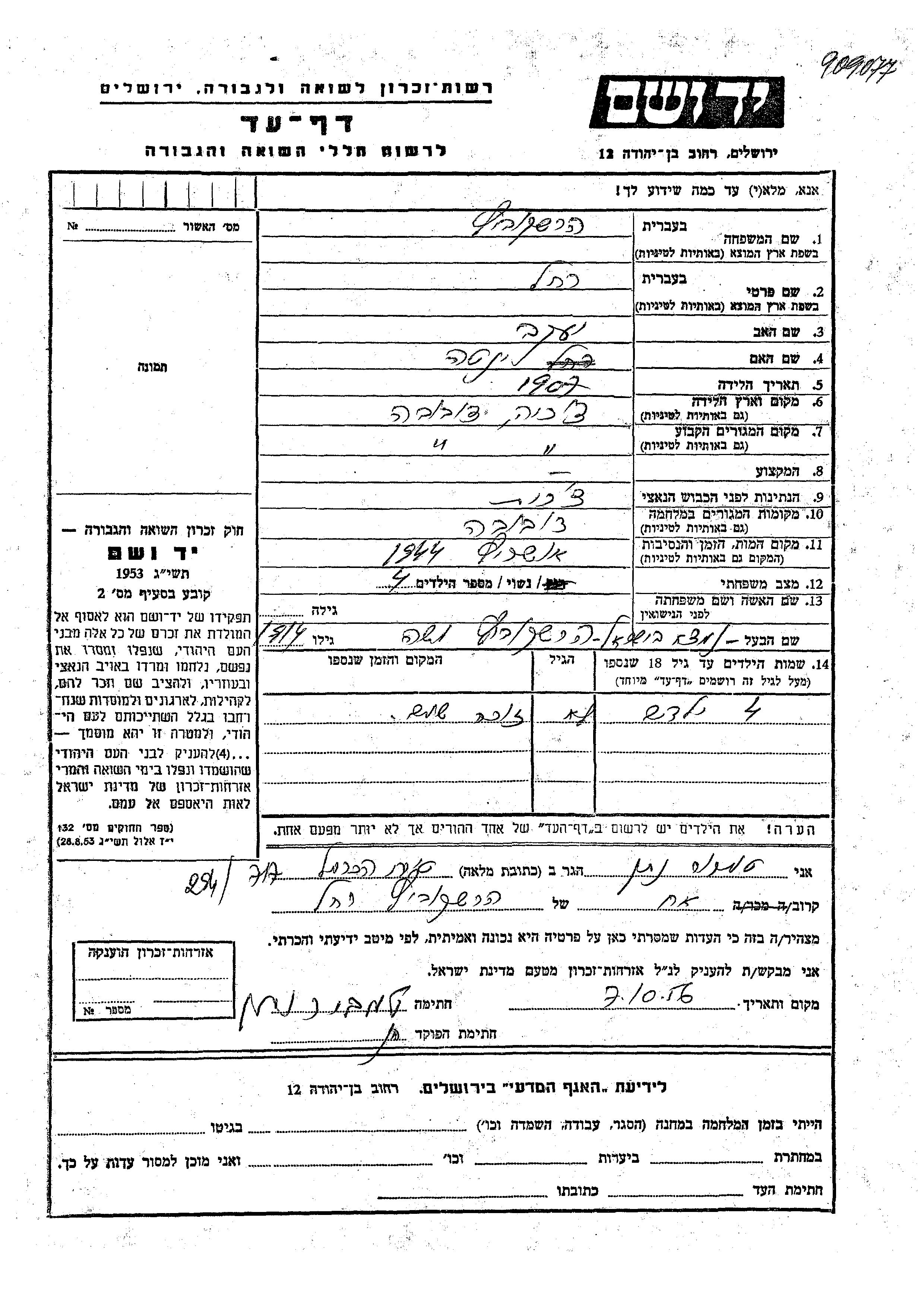 Яд Вашем - Листы свидетельских показаний Мемориального фонда