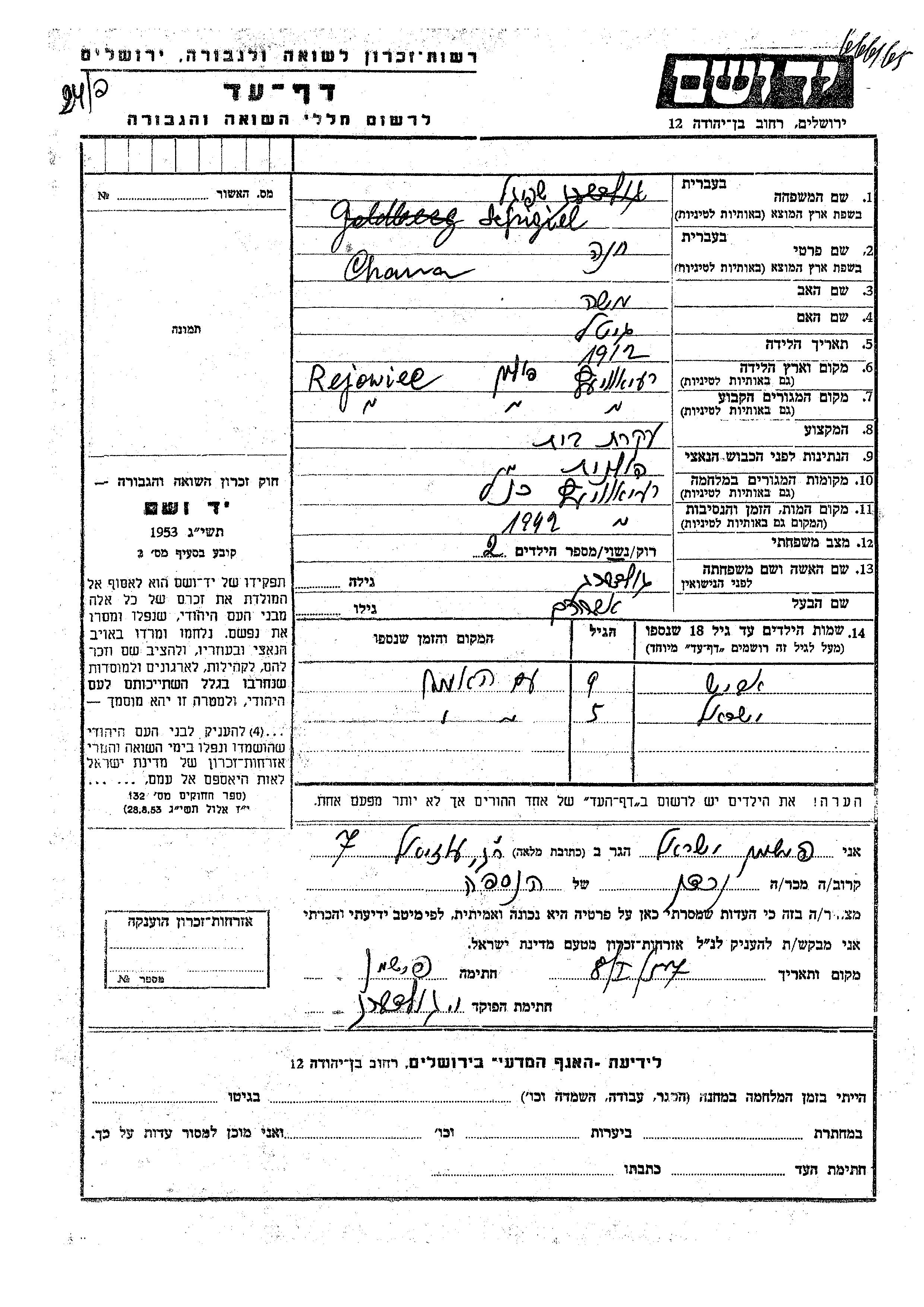 Яд Вашем - Листы свидетельских показаний Мемориального фонда