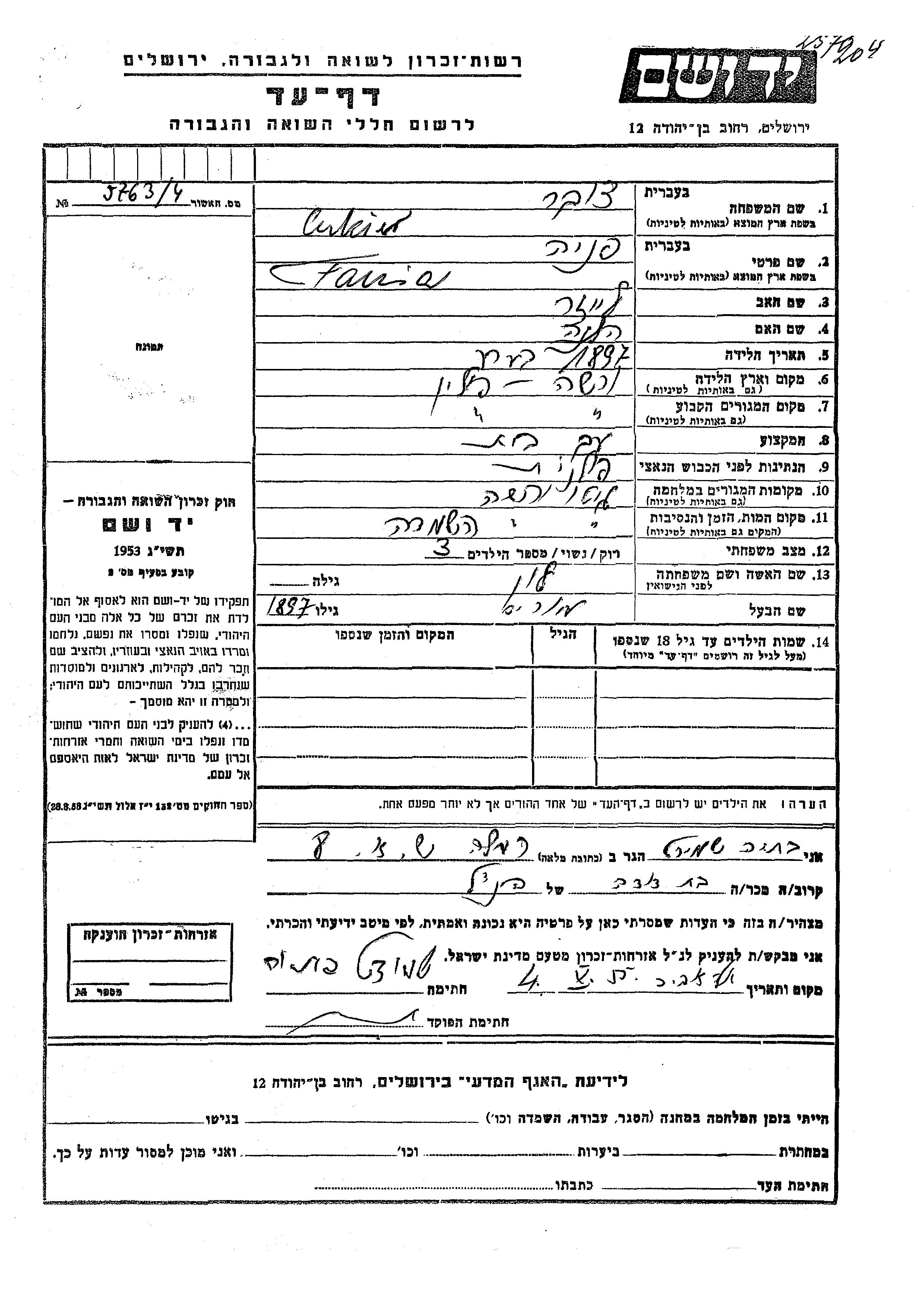 Яд Вашем - Листы свидетельских показаний Мемориального фонда