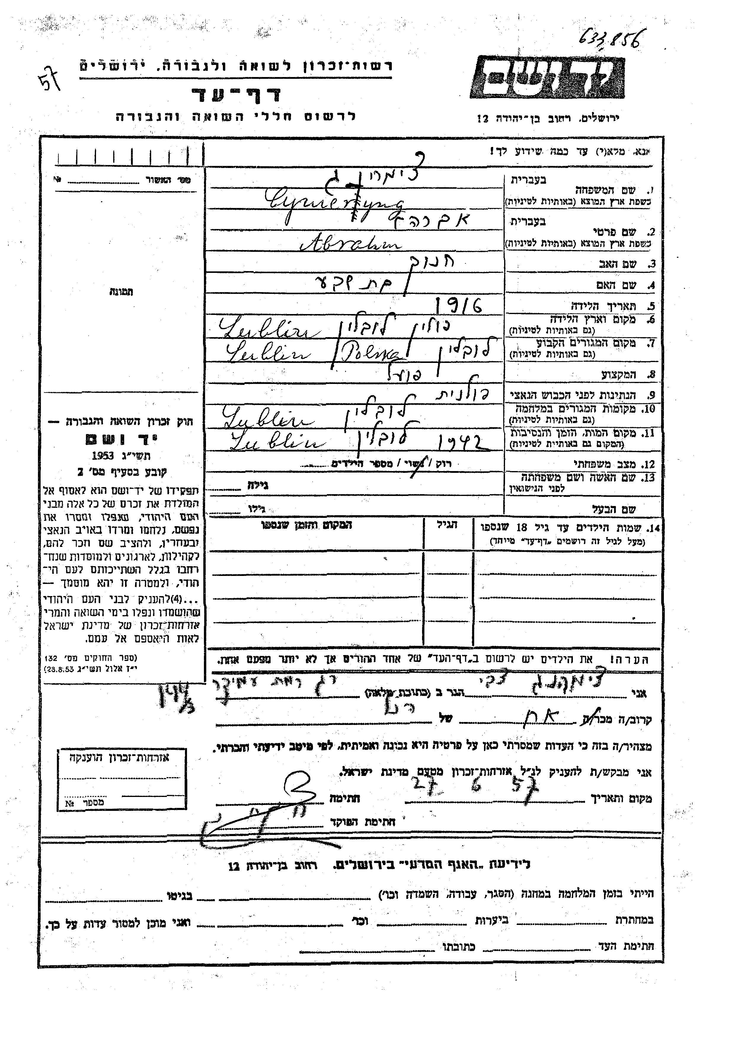 Яд Вашем - Листы свидетельских показаний Мемориального фонда