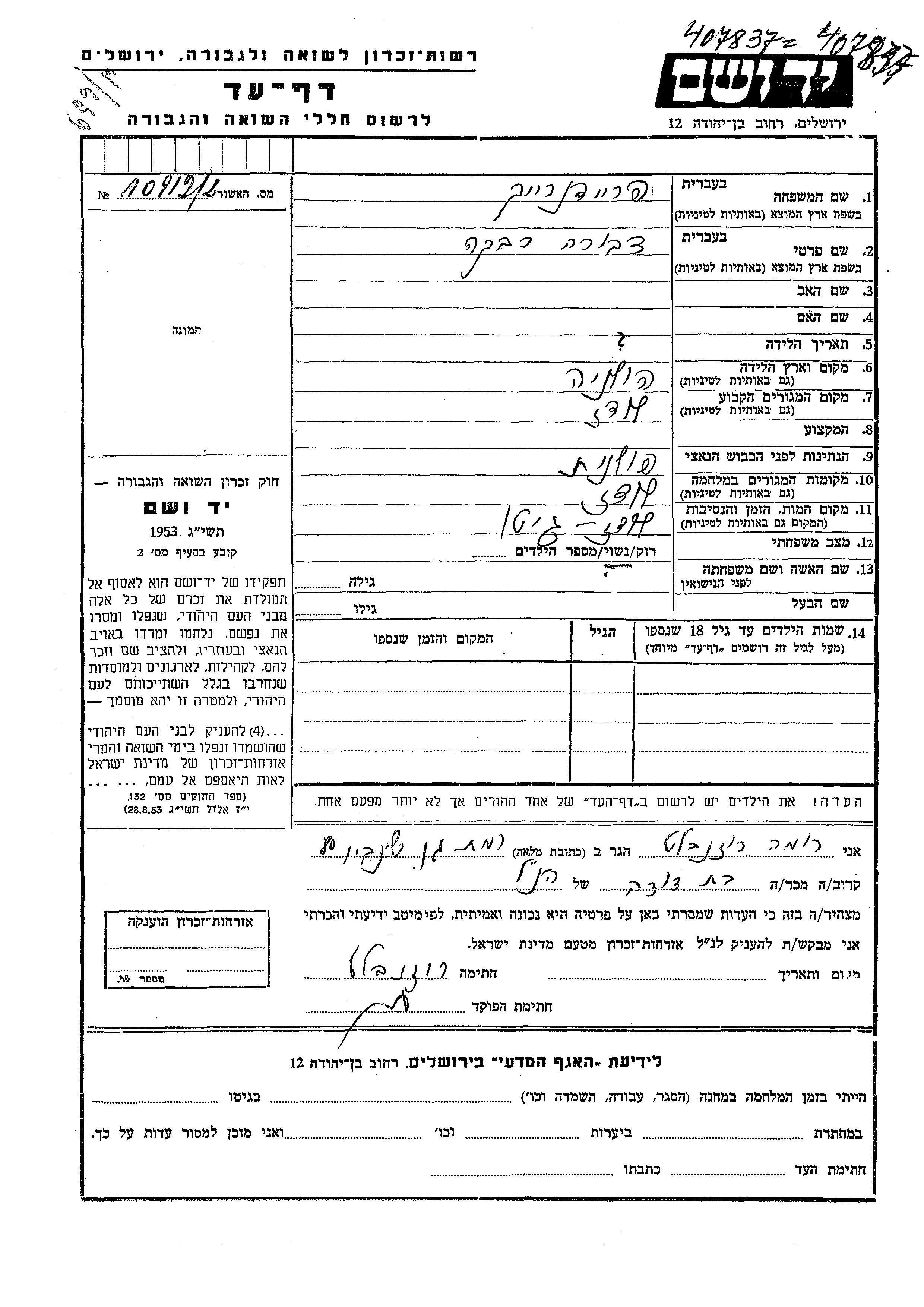 Яд Вашем - Листы свидетельских показаний Мемориального фонда