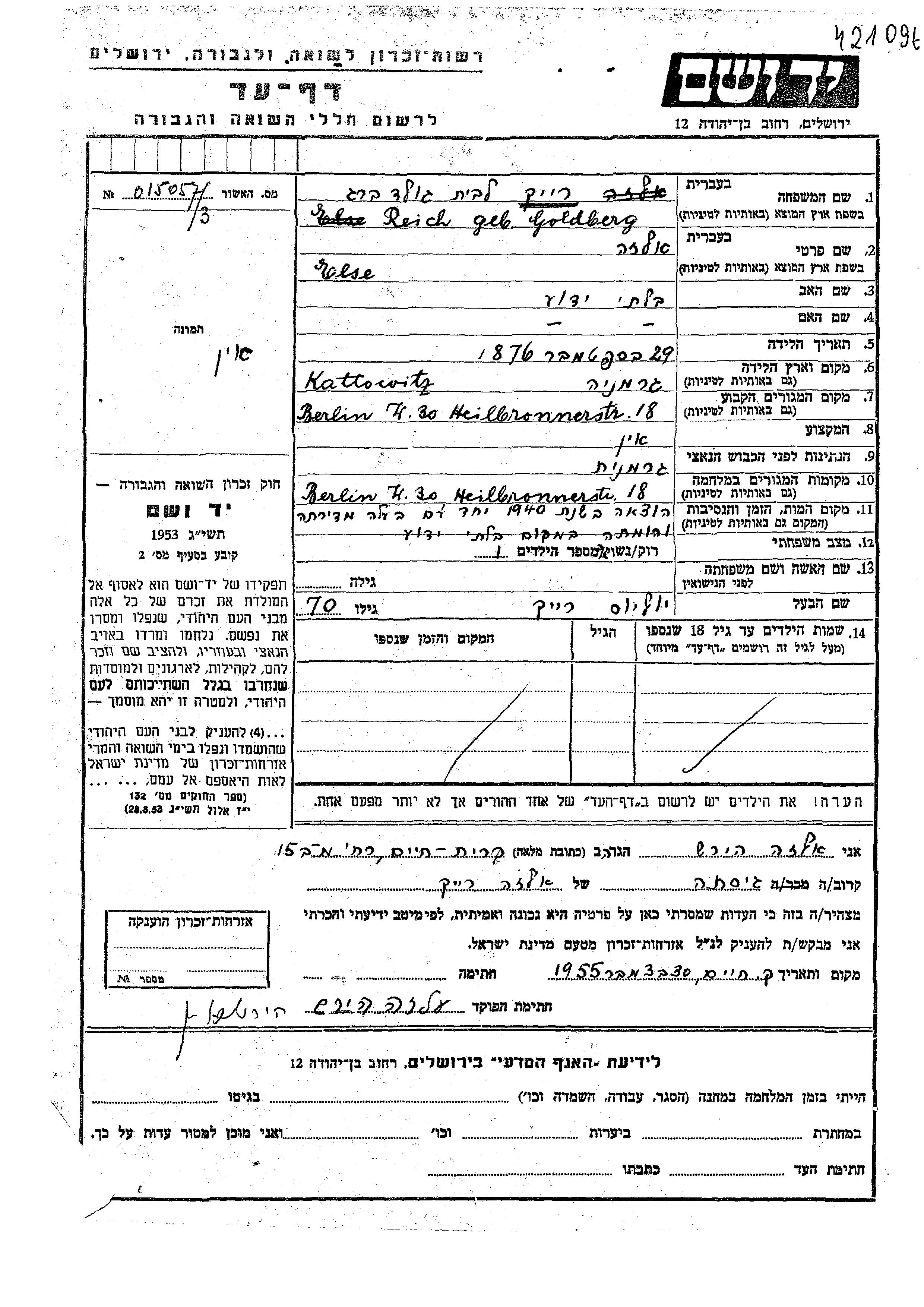 Эльзе Рейх, девичья фамилия Гольдберг, место рождения: Каттовиц, Польша. Женат / замужем. Место жительства до войны: Heilbronn, Германия. Место во время войны: Heilbronn, Германия.