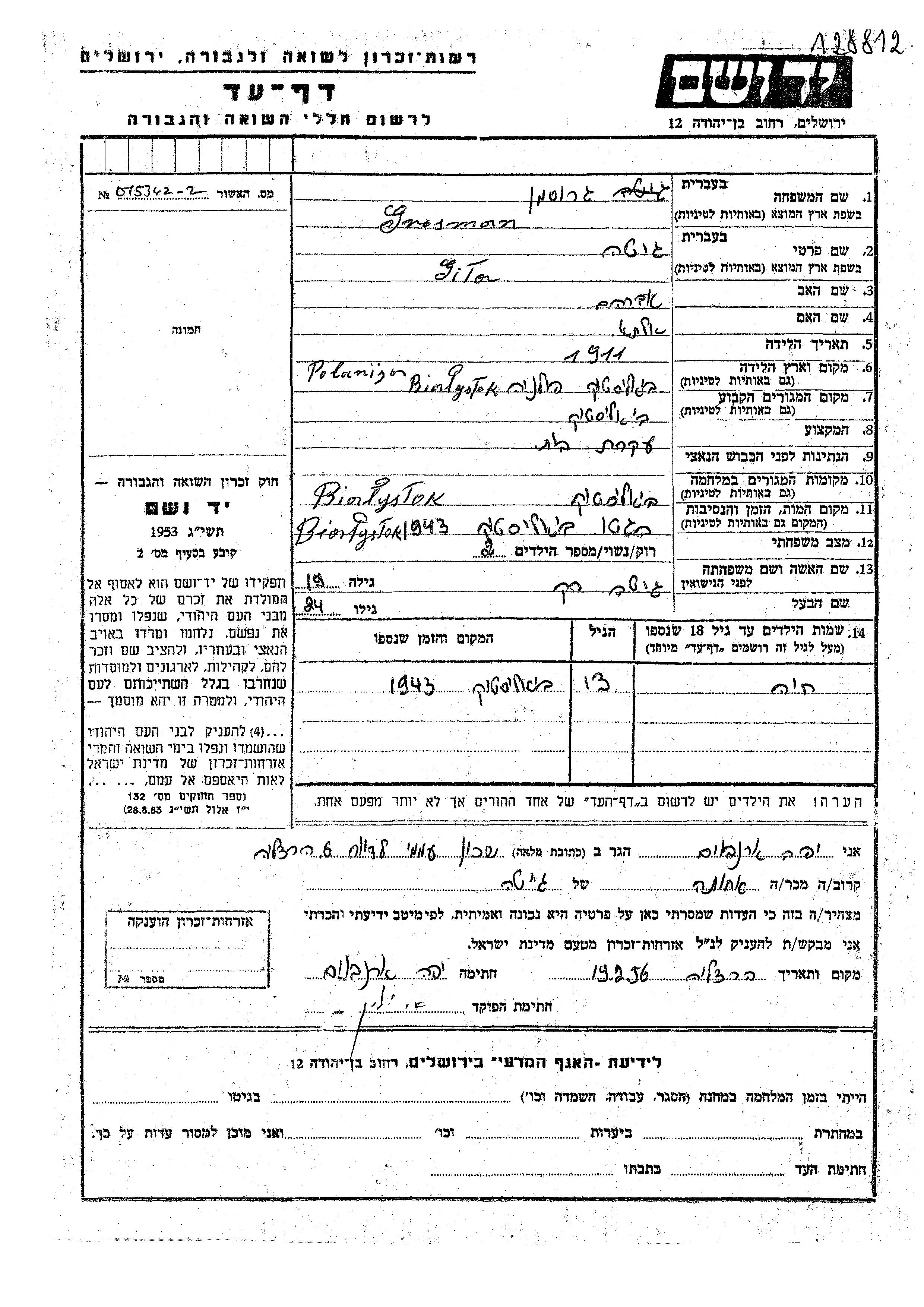 Яд Вашем - Листы свидетельских показаний Мемориального фонда