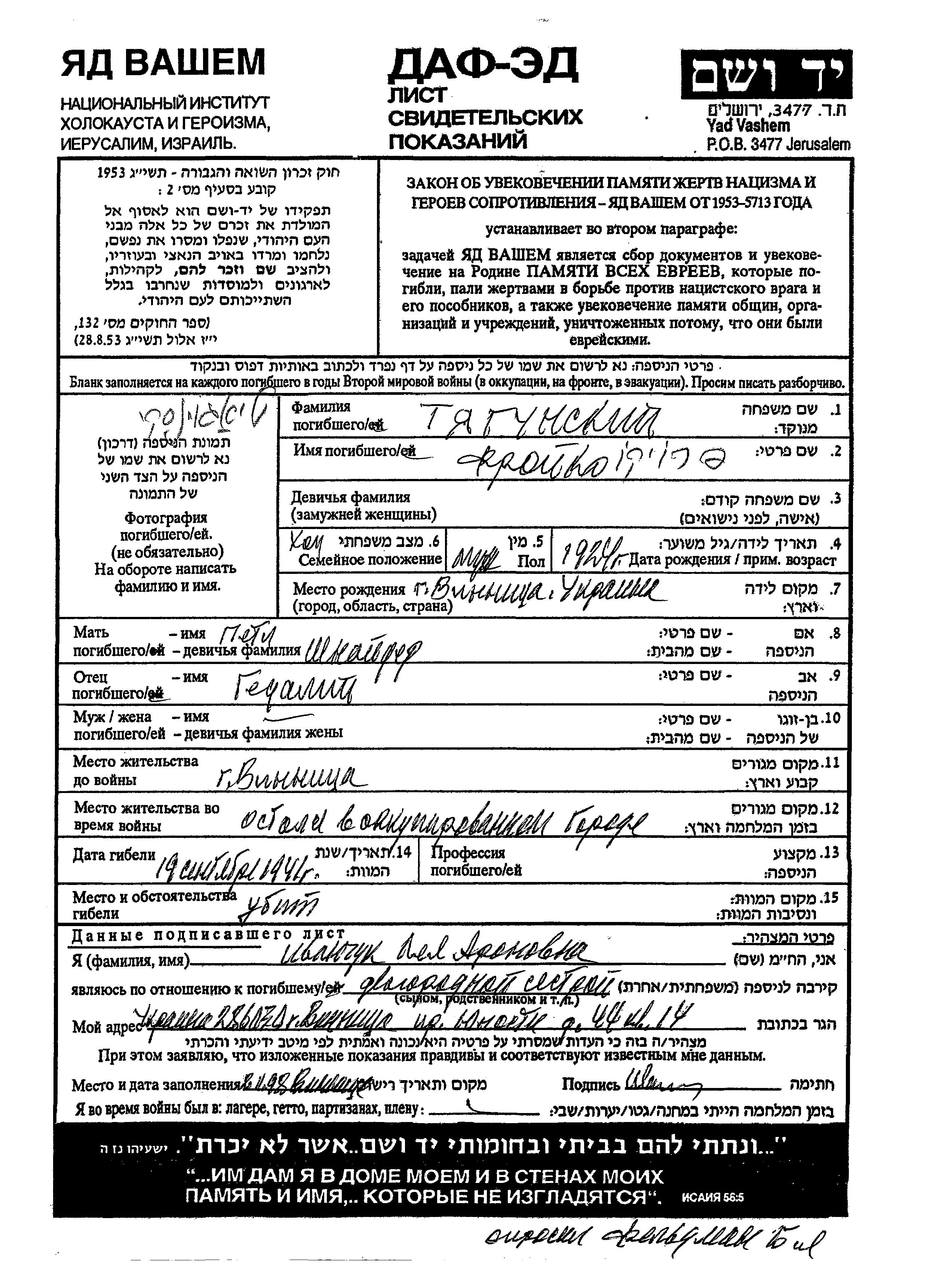 Поиск подателя Листа свидетельских показаний. Поиск по любому имени, включая уменьшительное или прозвище