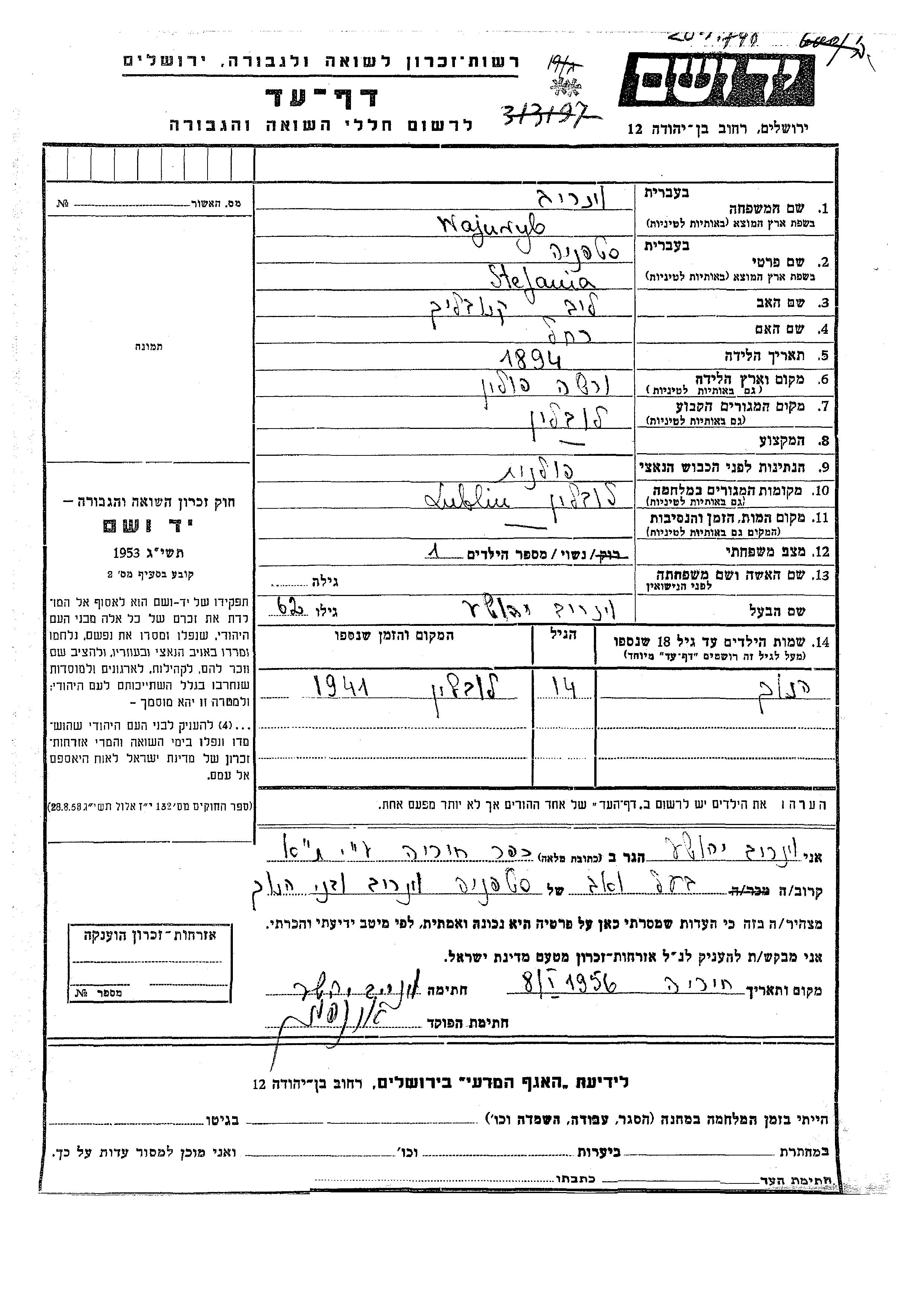 Яд Вашем - Листы свидетельских показаний Мемориального фонда