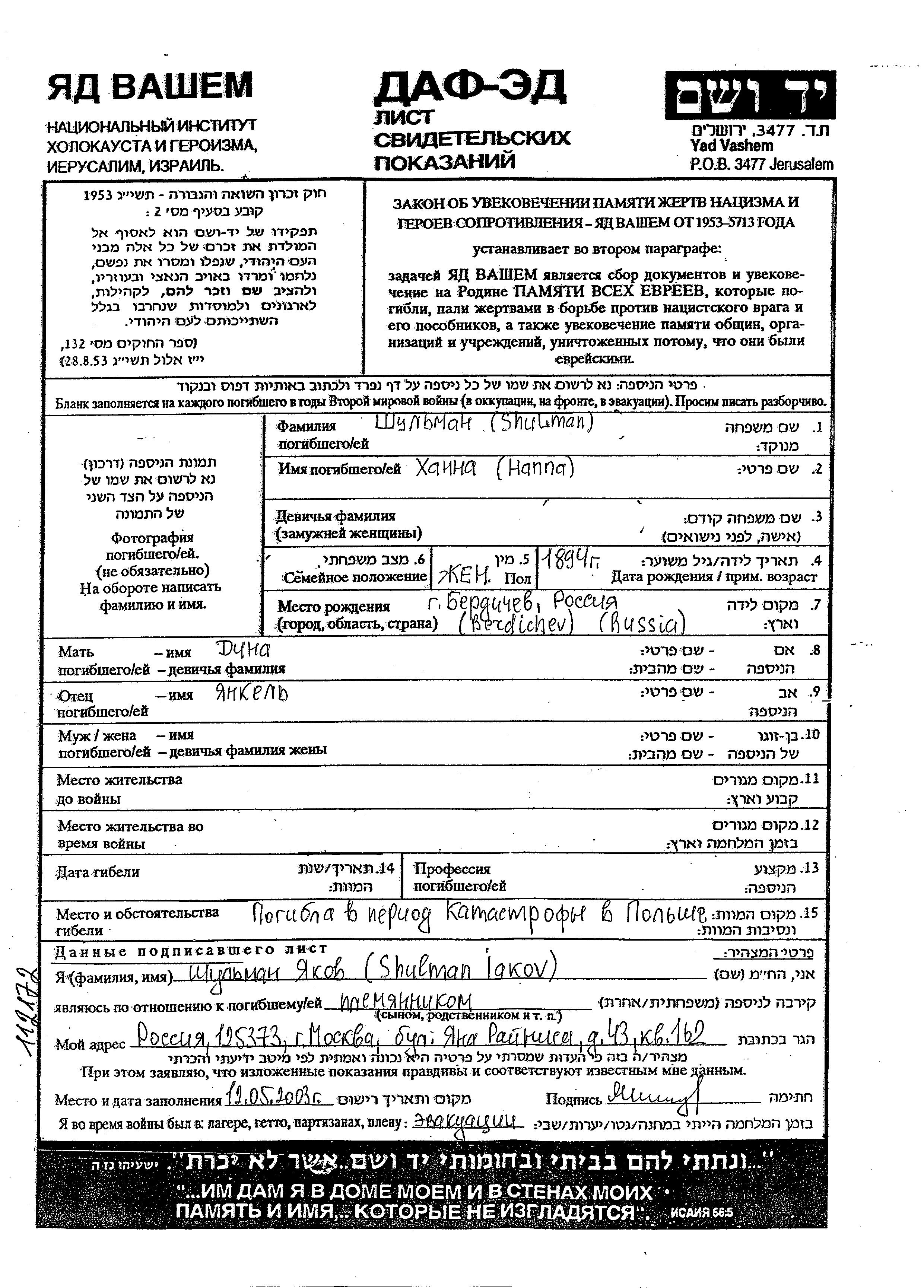 Поиск подателя Листа свидетельских показаний. Поиск по любому имени, включая уменьшительное или прозвище