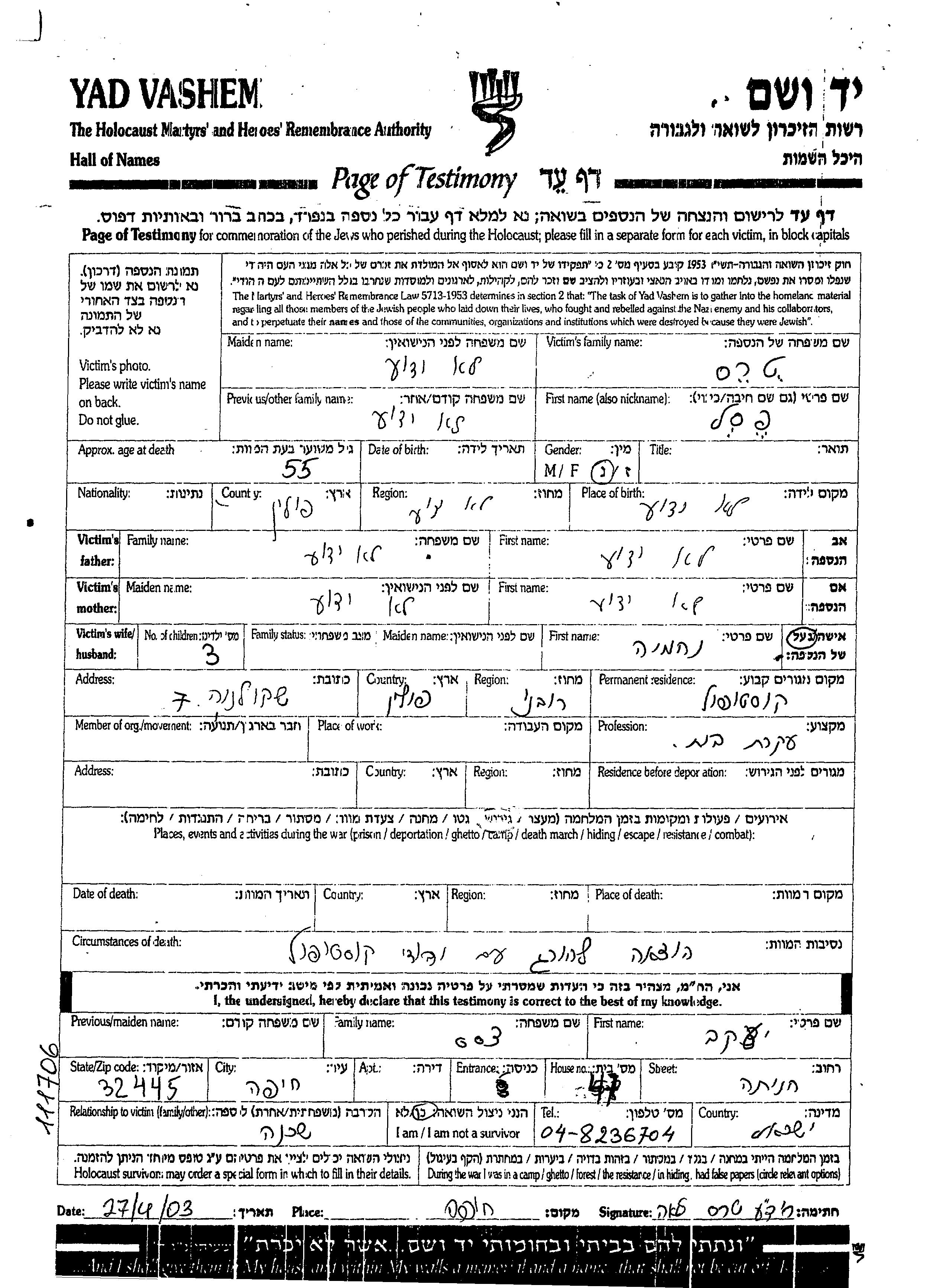 Поиск подателя Листа свидетельских показаний. Поиск по любому имени, включая уменьшительное или прозвище
