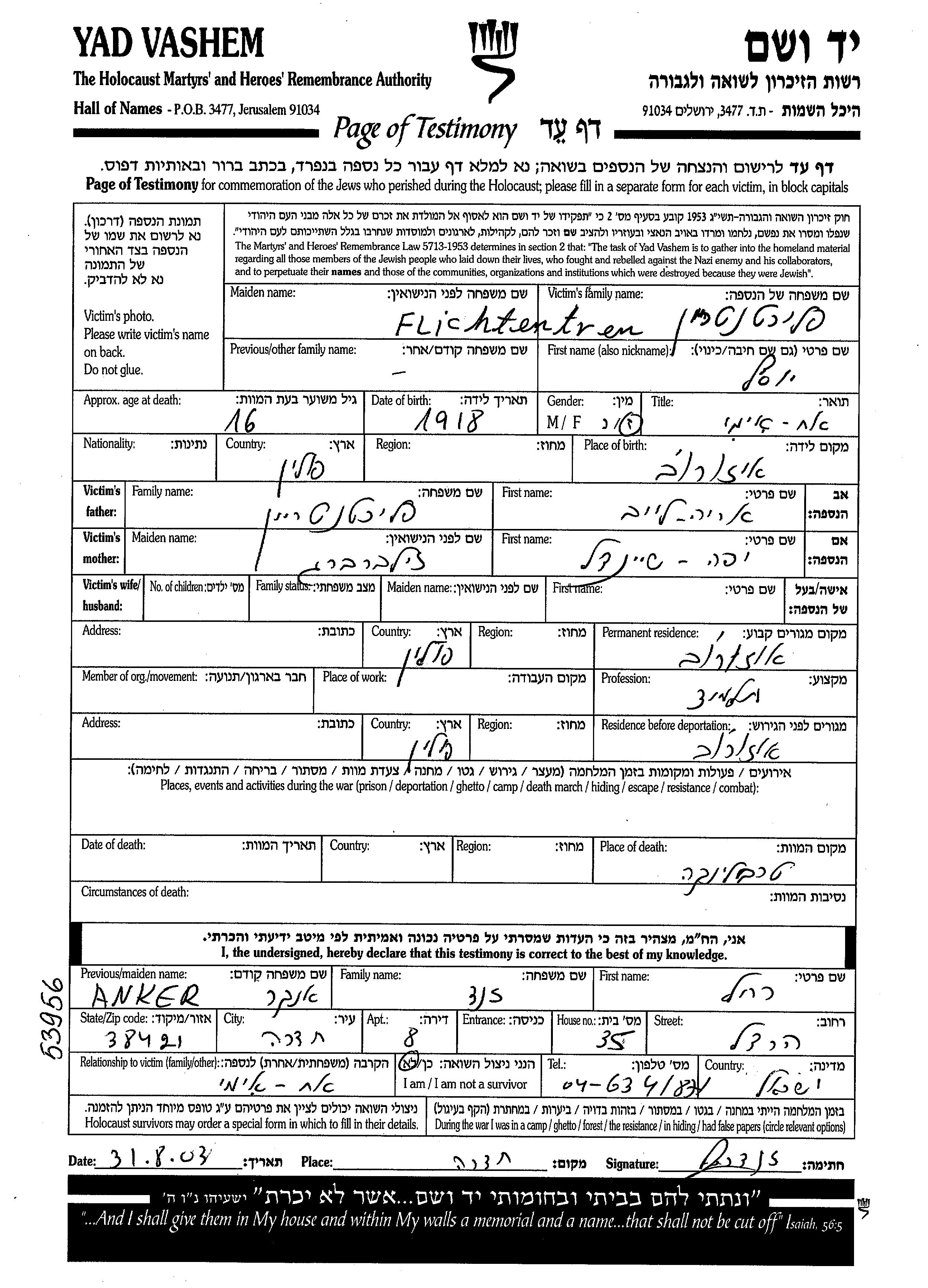 Яд Вашем - Листы свидетельских показаний Мемориального фонда