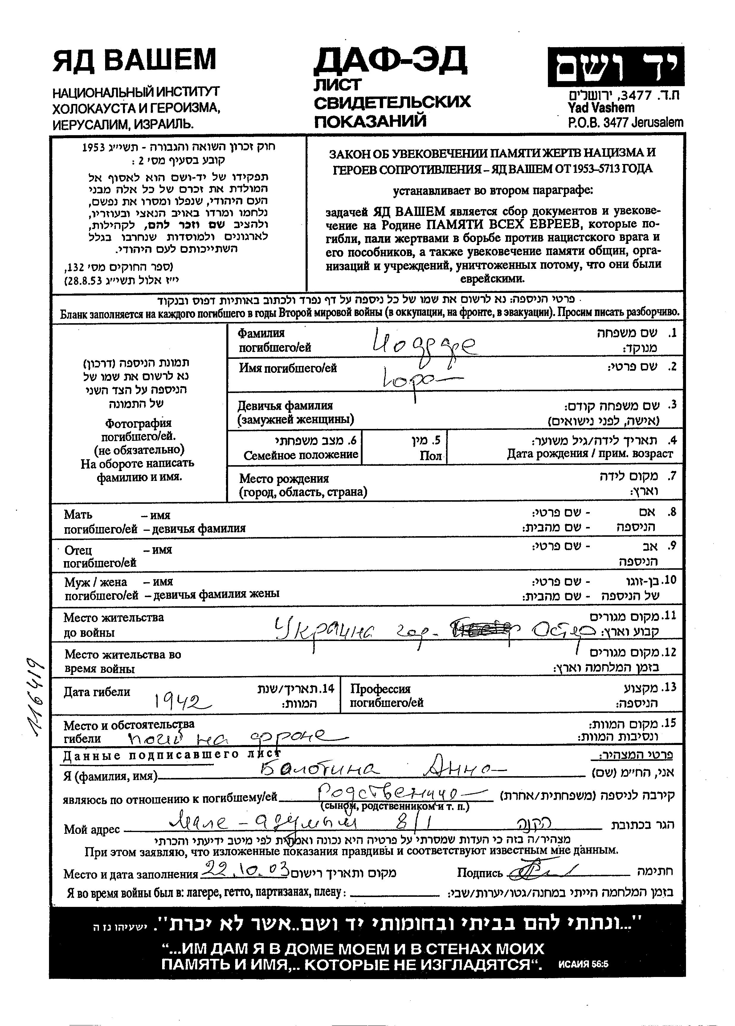 Поиск подателя Листа свидетельских показаний. Поиск по любому имени, включая уменьшительное или прозвище