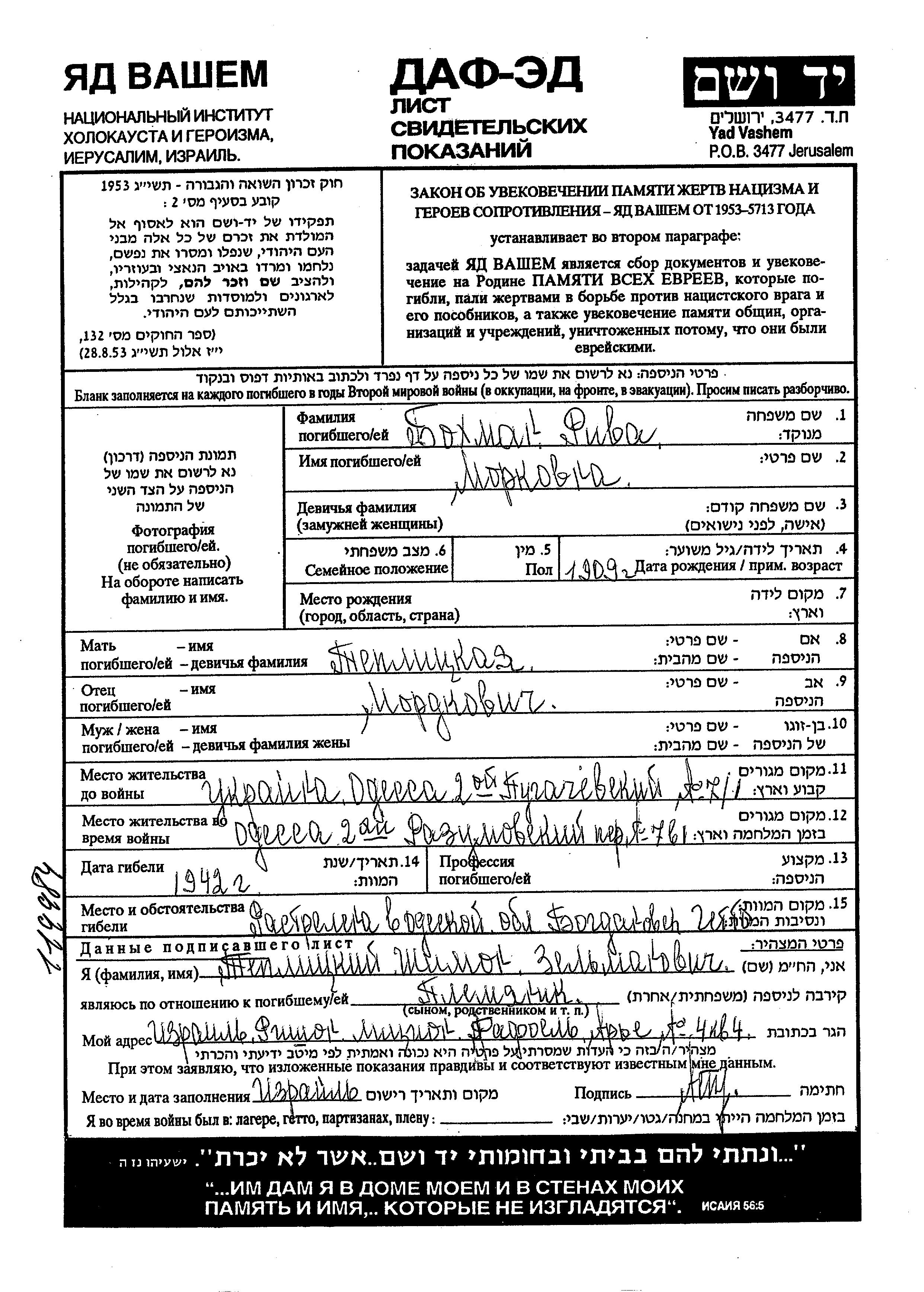 Поиск подателя Листа свидетельских показаний. Поиск по любому имени, включая уменьшительное или прозвище