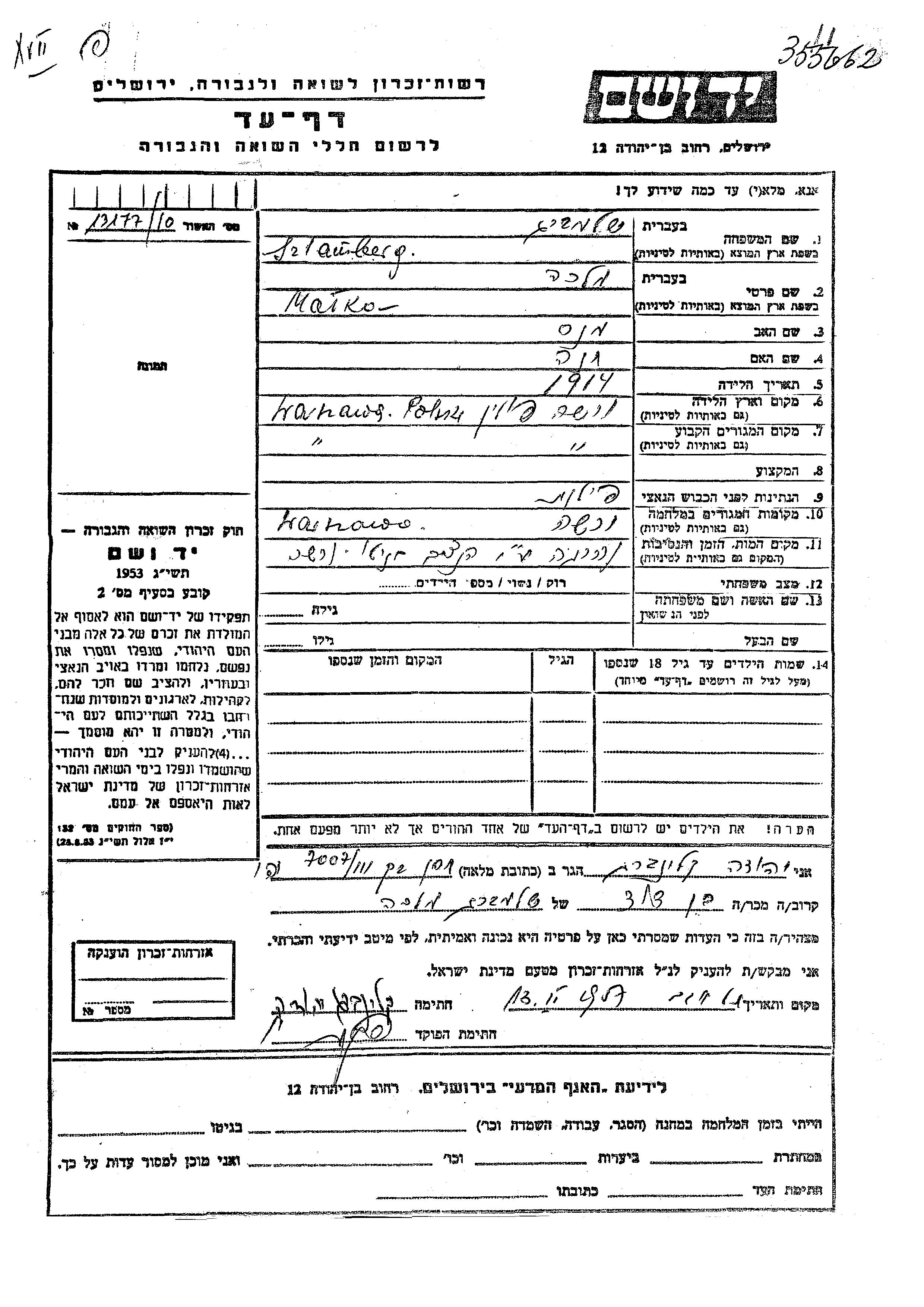 Яд Вашем - Листы свидетельских показаний Мемориального фонда