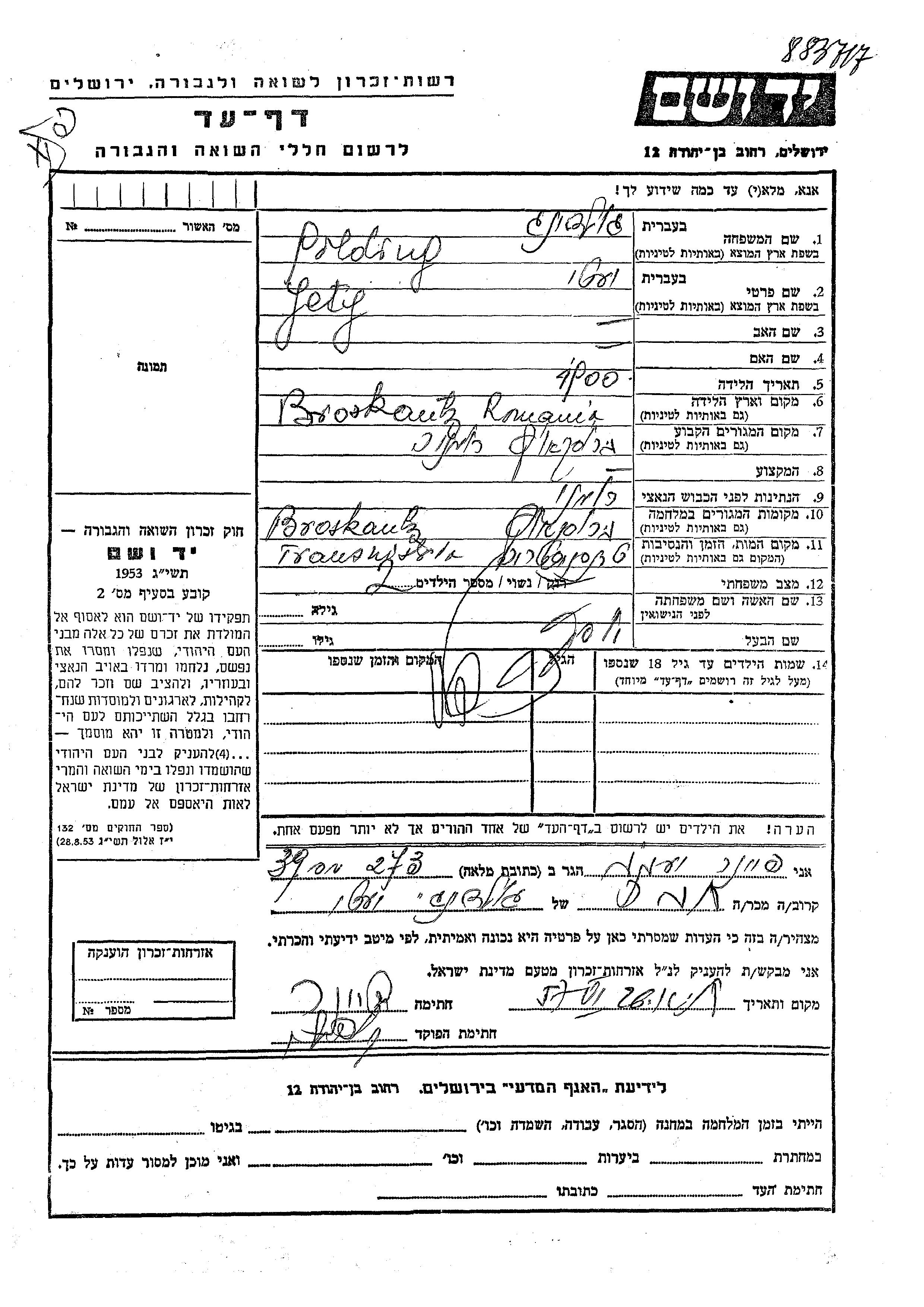 Ети Гольдинг, место рождения: Броскэуць, Румыния. Женат / замужем. Место жительства до войны: Броскэуць, Румыния. Место во время войны: Броскэуць, Румыния.