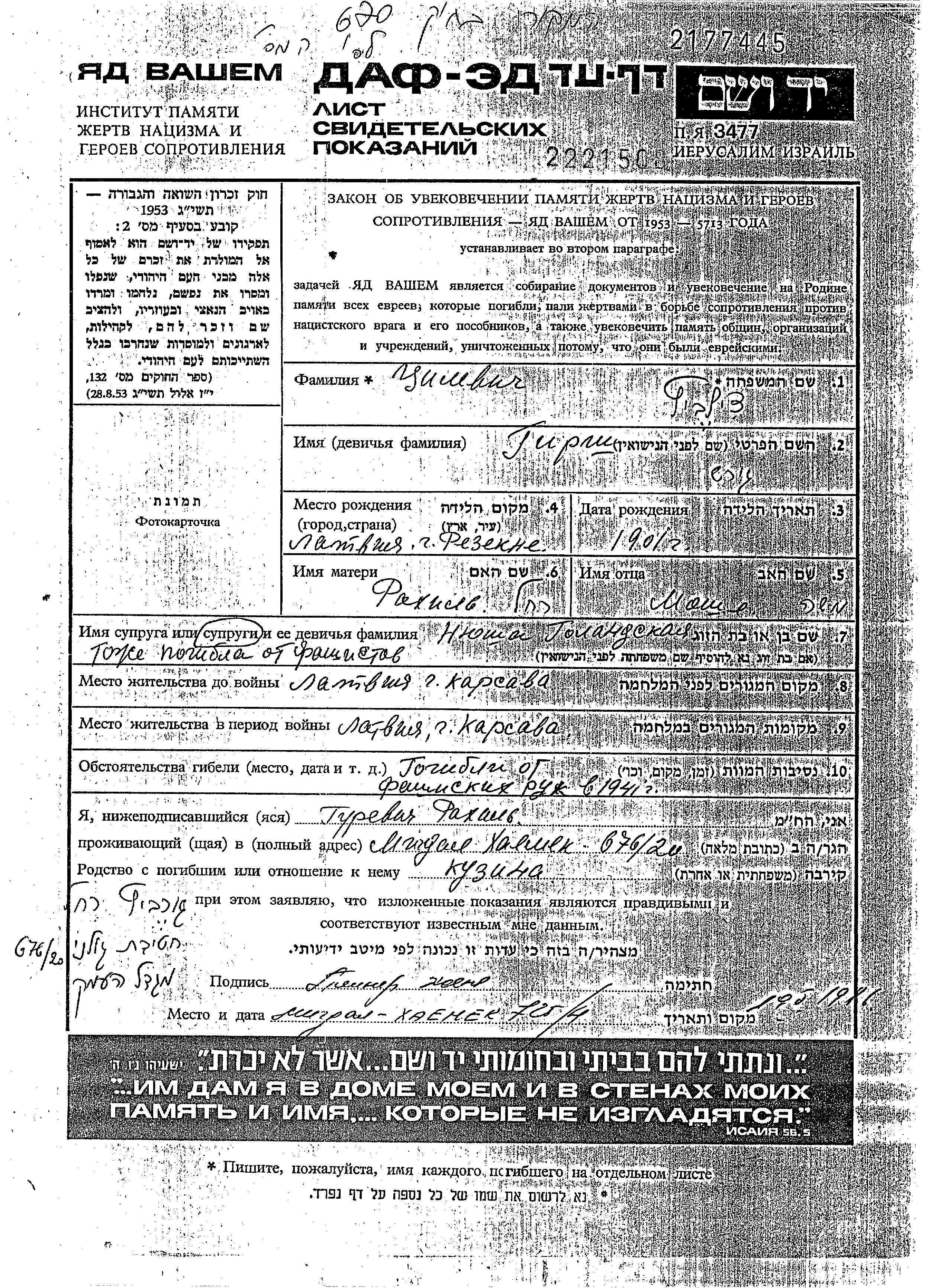 Яд Вашем - Листы свидетельских показаний Мемориального фонда