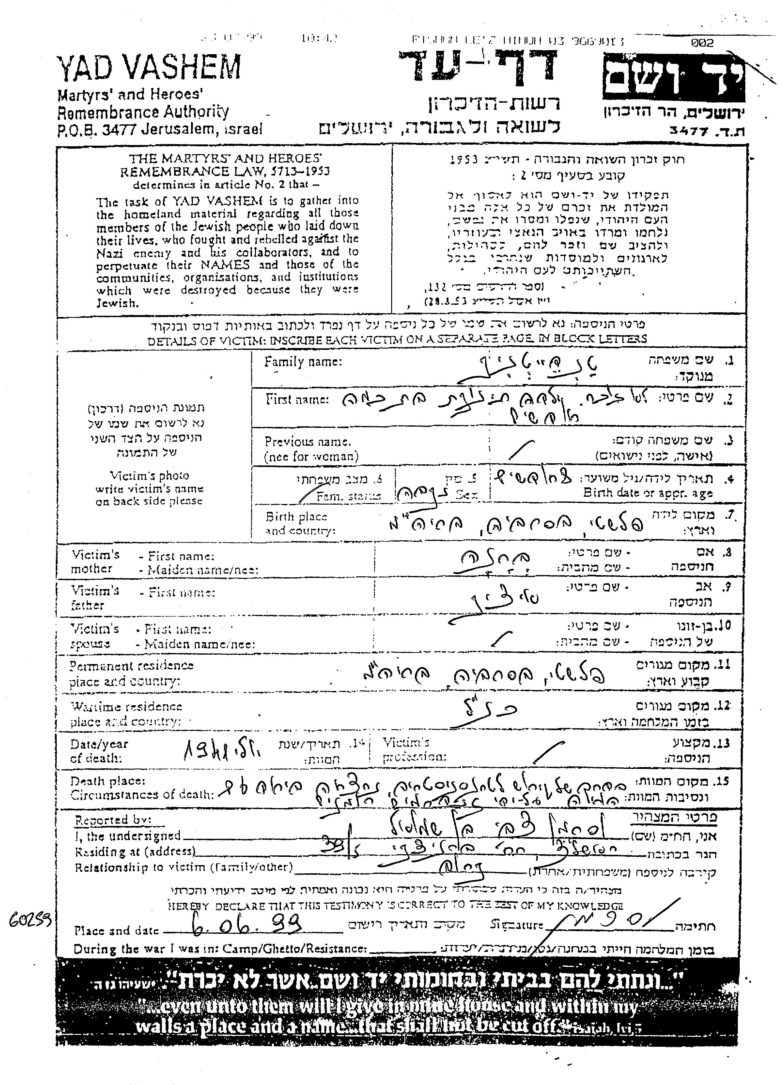Яд Вашем - Листы свидетельских показаний Мемориального фонда