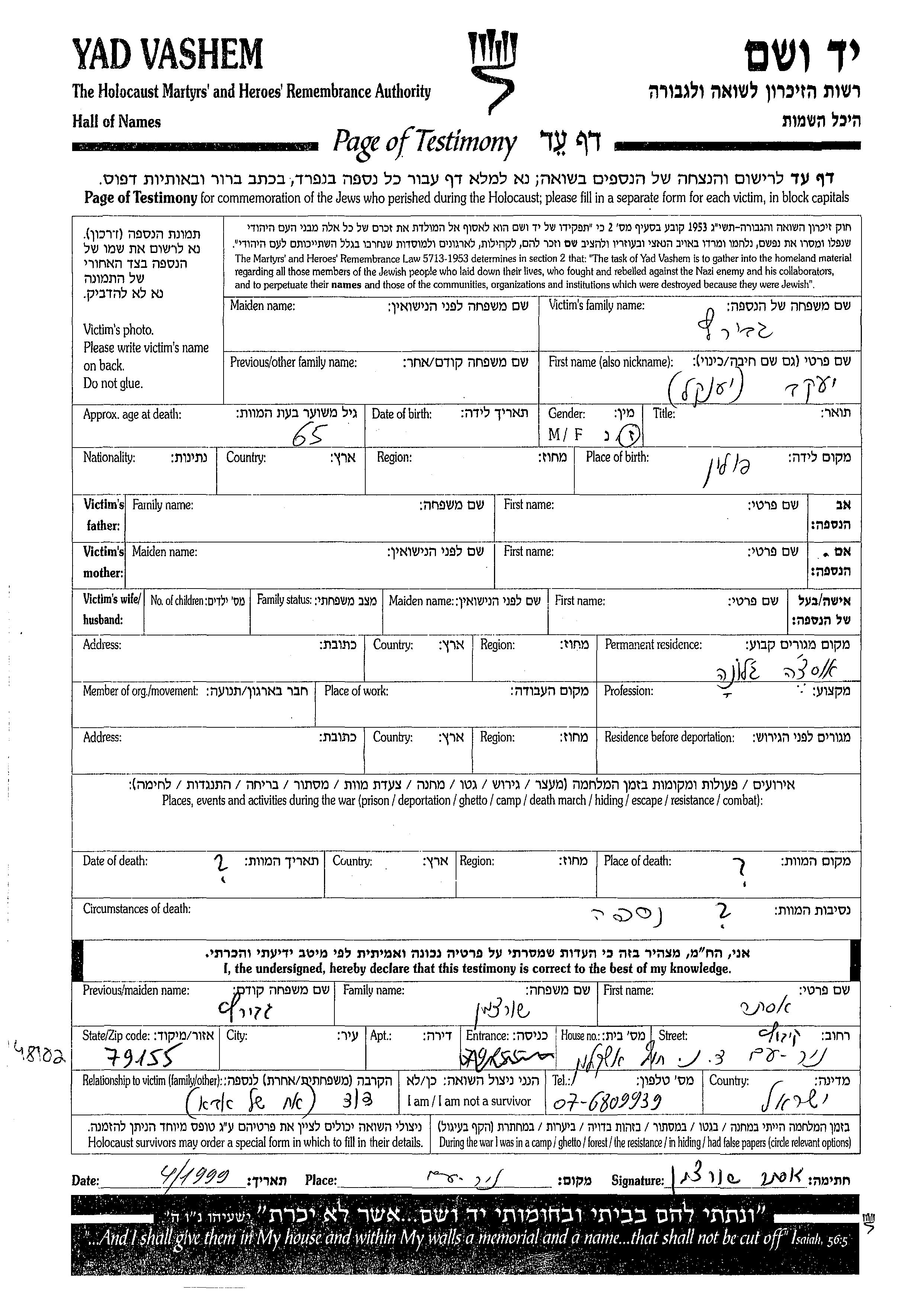 Яд Вашем - Листы свидетельских показаний Мемориального фонда
