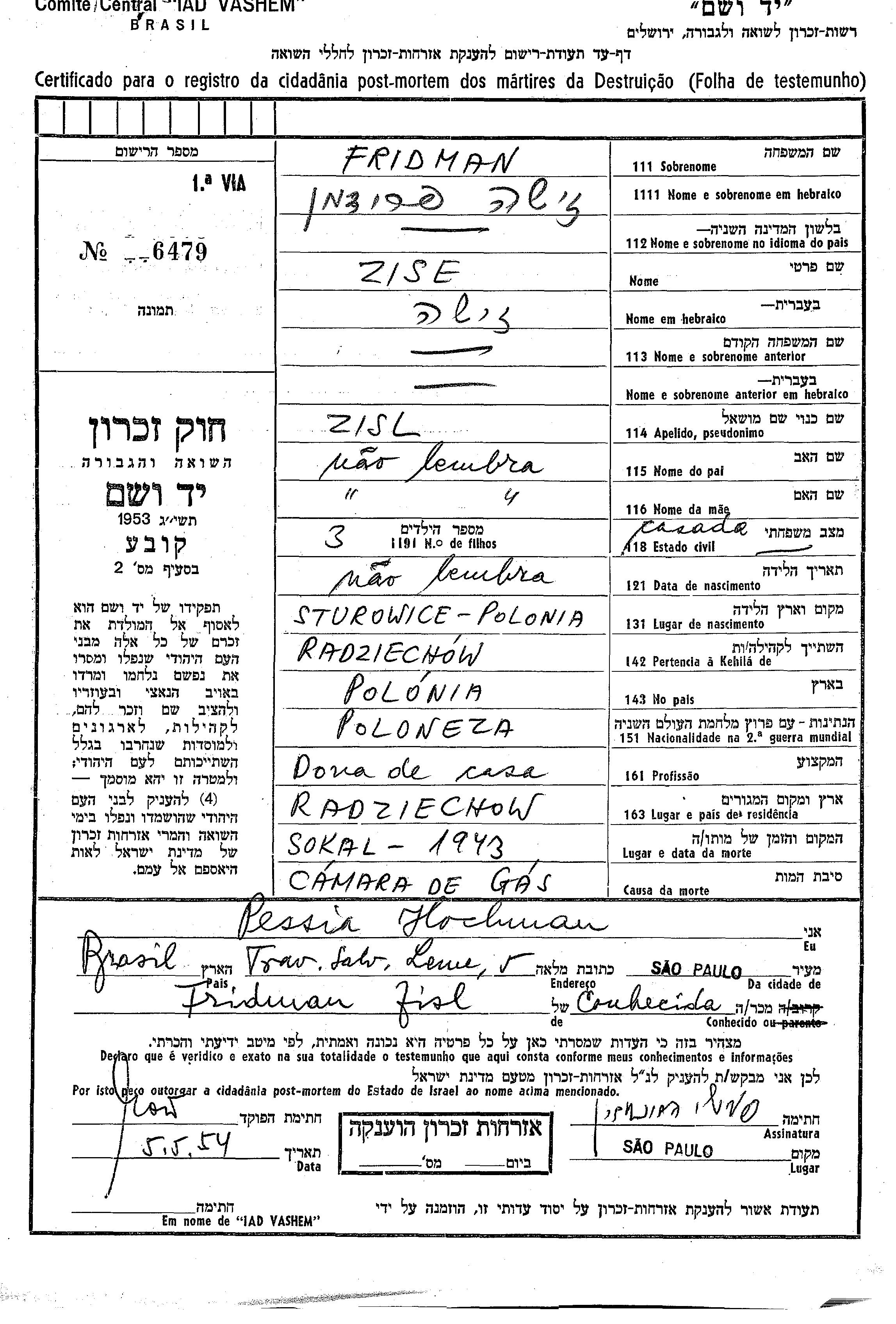 Фридман Зисе Зисл Радехов, Польша Лист свидетельских показаний