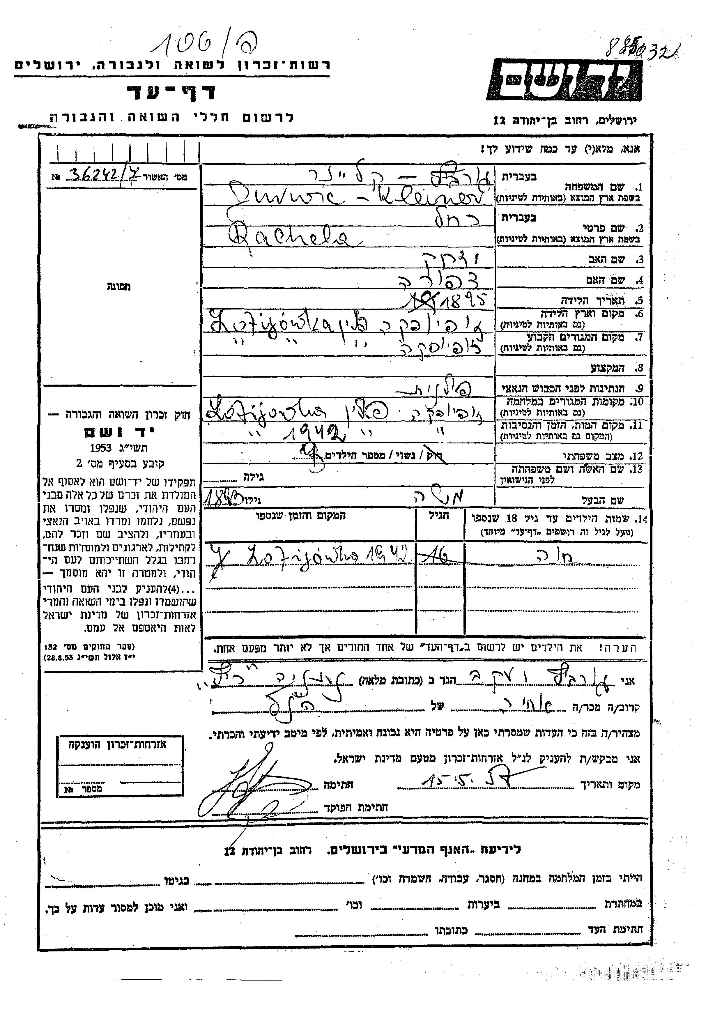 Клейнер Рахела 1895 Зофьювка, Польша Лист свидетельских показаний