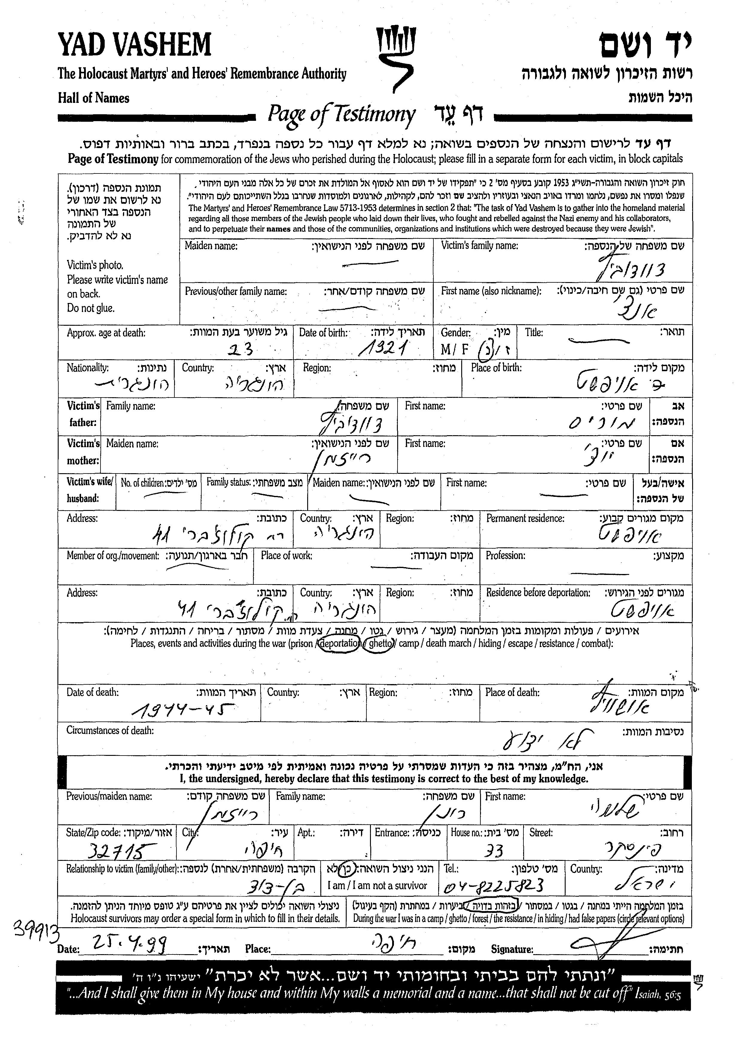 Яд Вашем - Листы свидетельских показаний Мемориального фонда