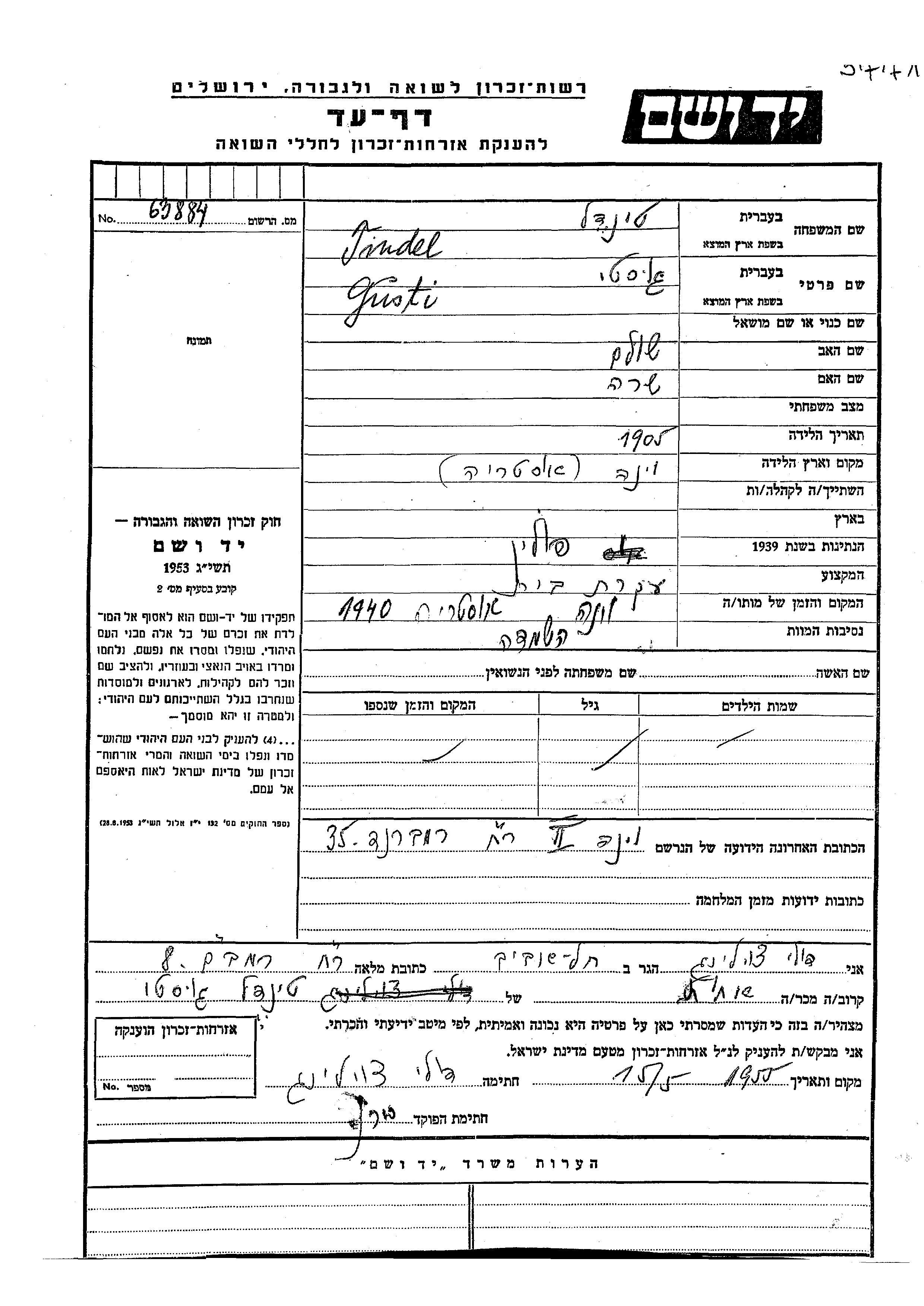 Яд Вашем - Листы свидетельских показаний Мемориального фонда