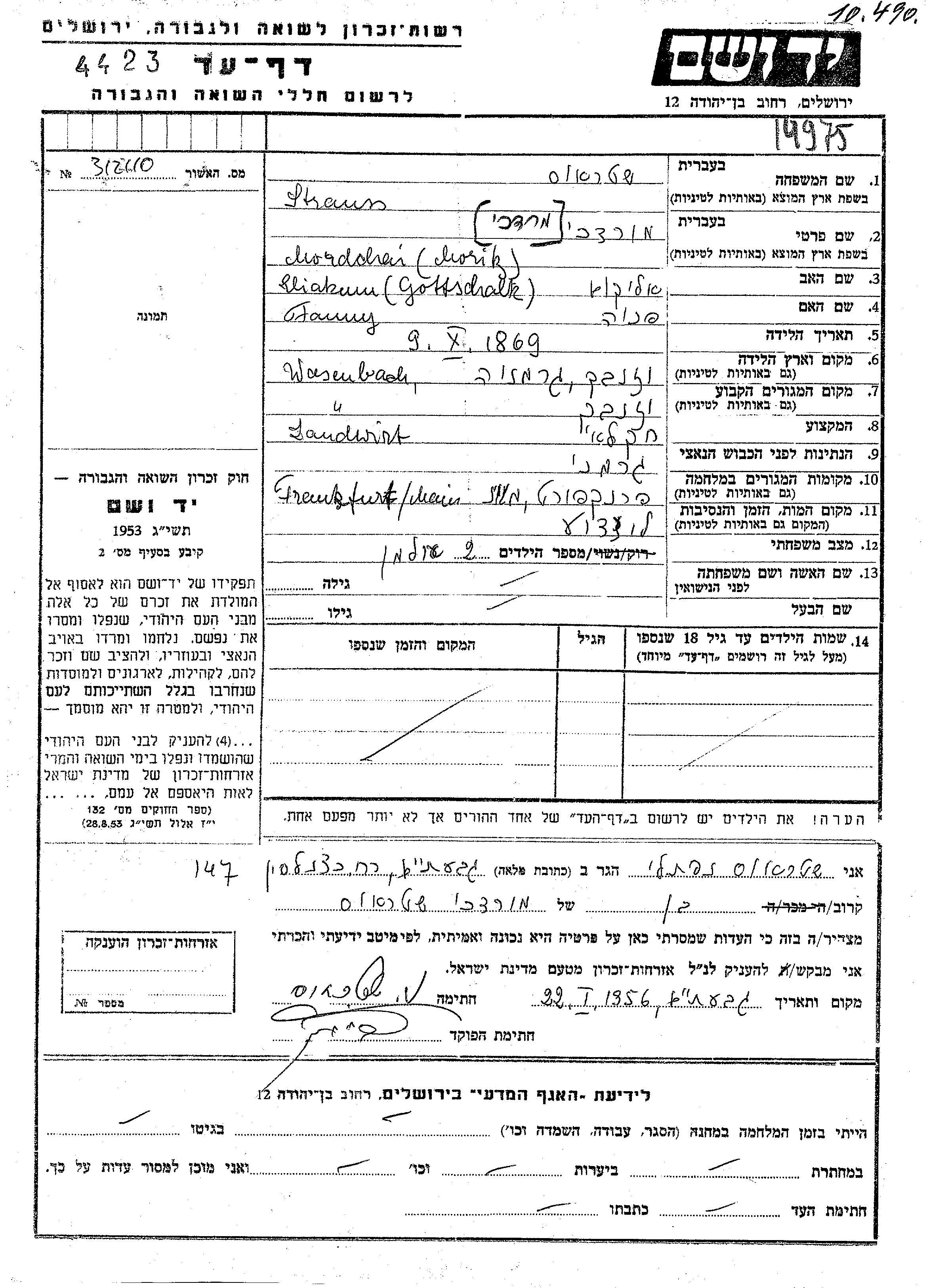 Яд Вашем - Листы свидетельских показаний Мемориального фонда