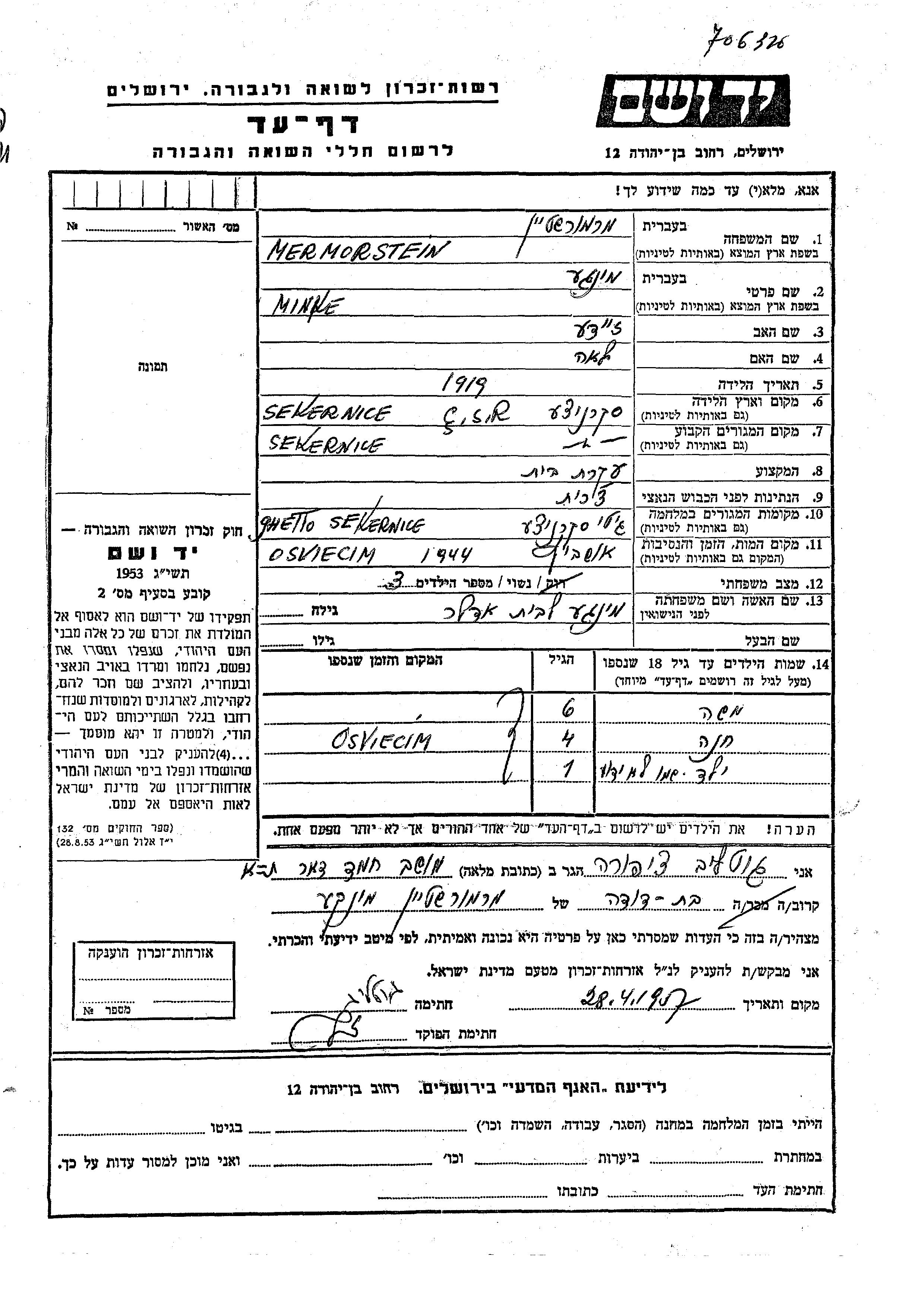 Яд Вашем - Листы свидетельских показаний Мемориального фонда