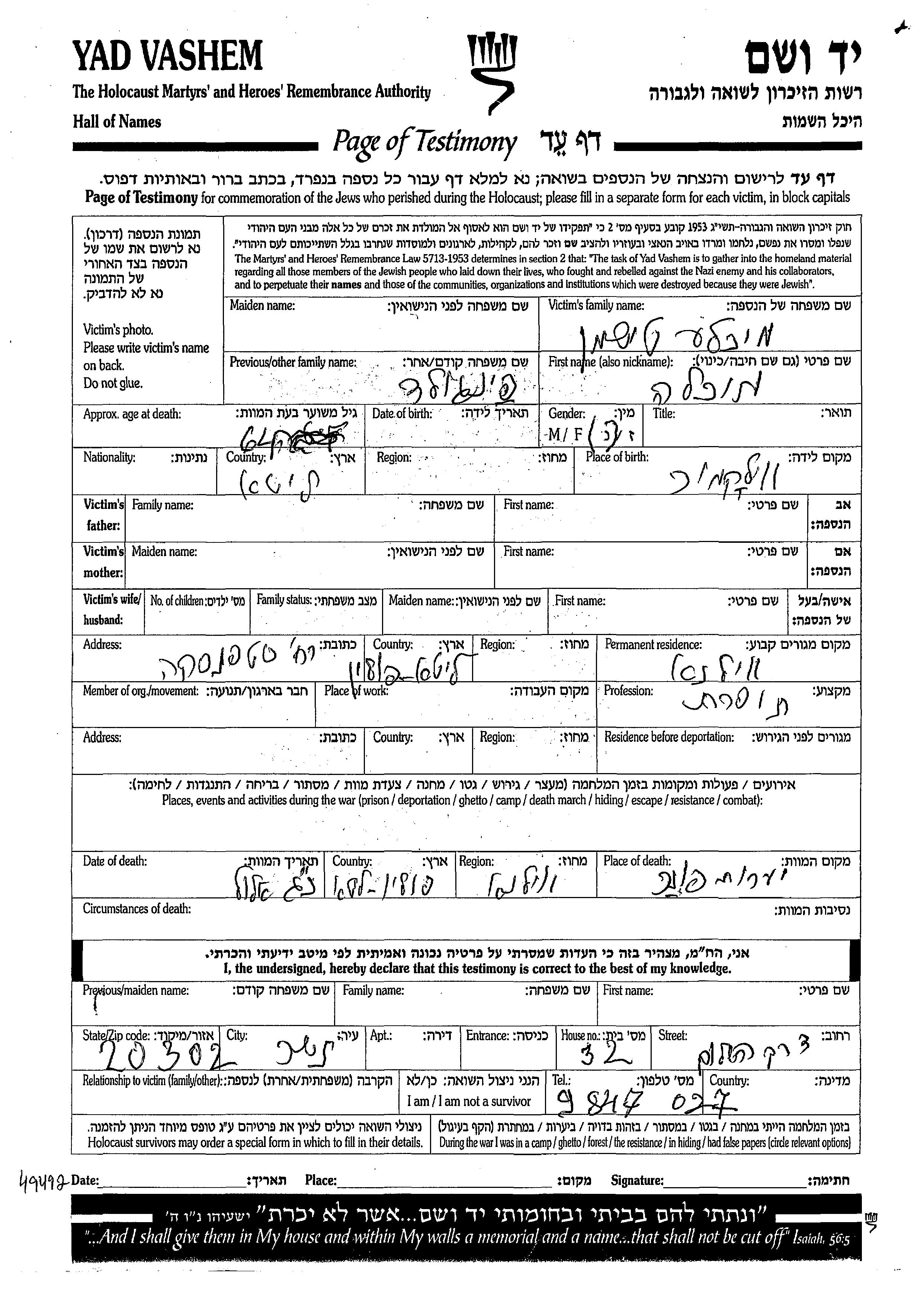 Любое место нахождения во время войны: город/село или гетто/лагерь, или область/район, или страна