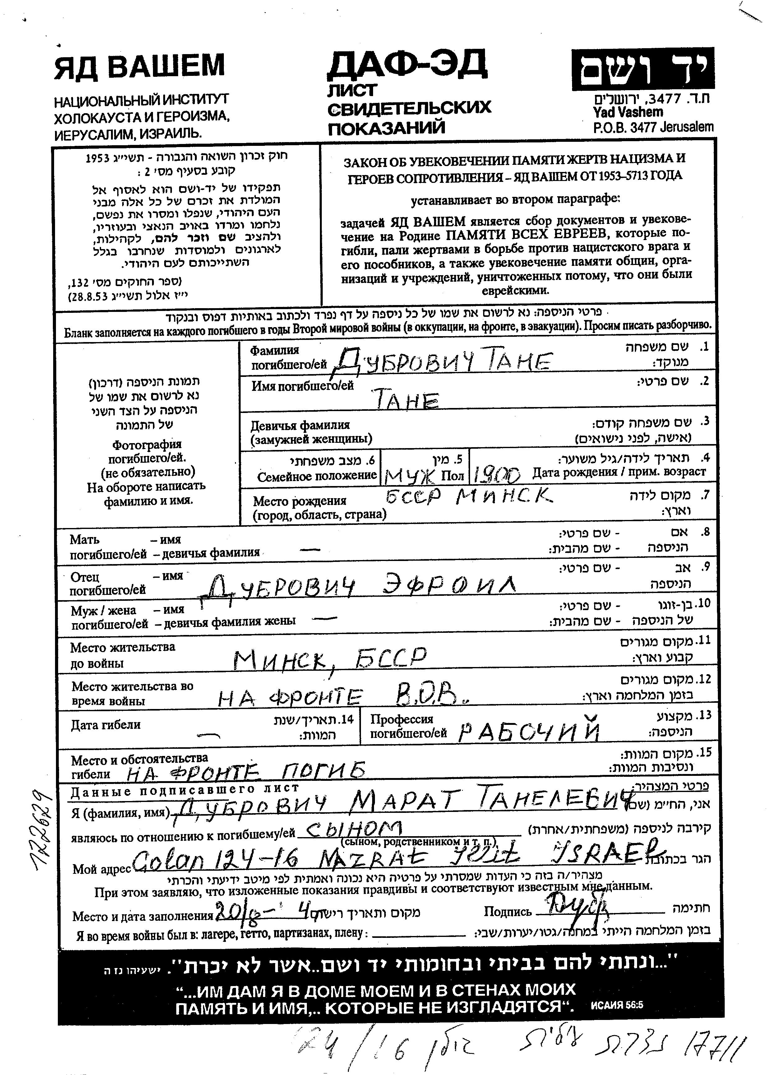 Поиск подателя Листа свидетельских показаний. Поиск по любому имени, включая уменьшительное или прозвище