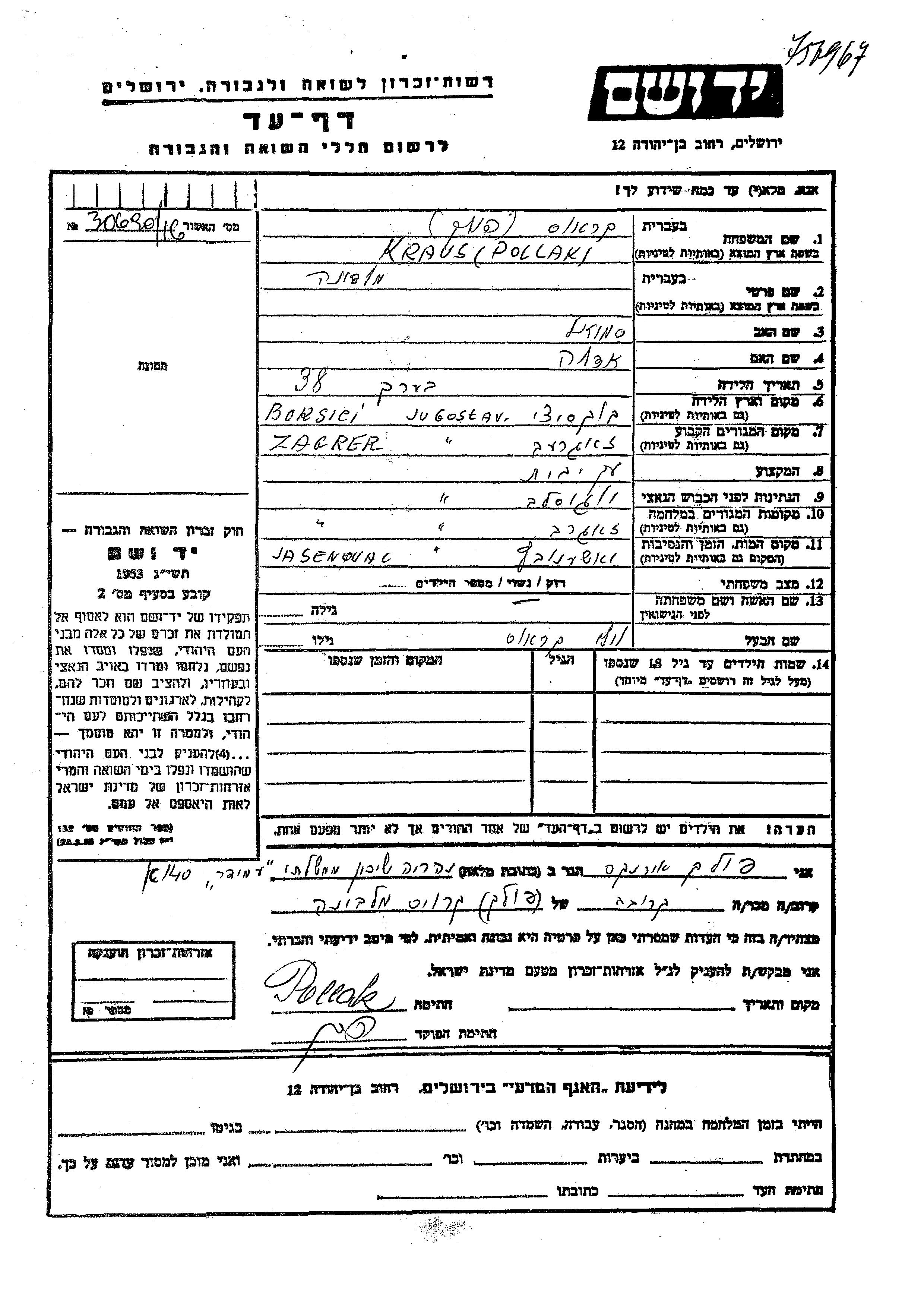 Краус Мальвина Загреб, Югославия Лист свидетельских показаний