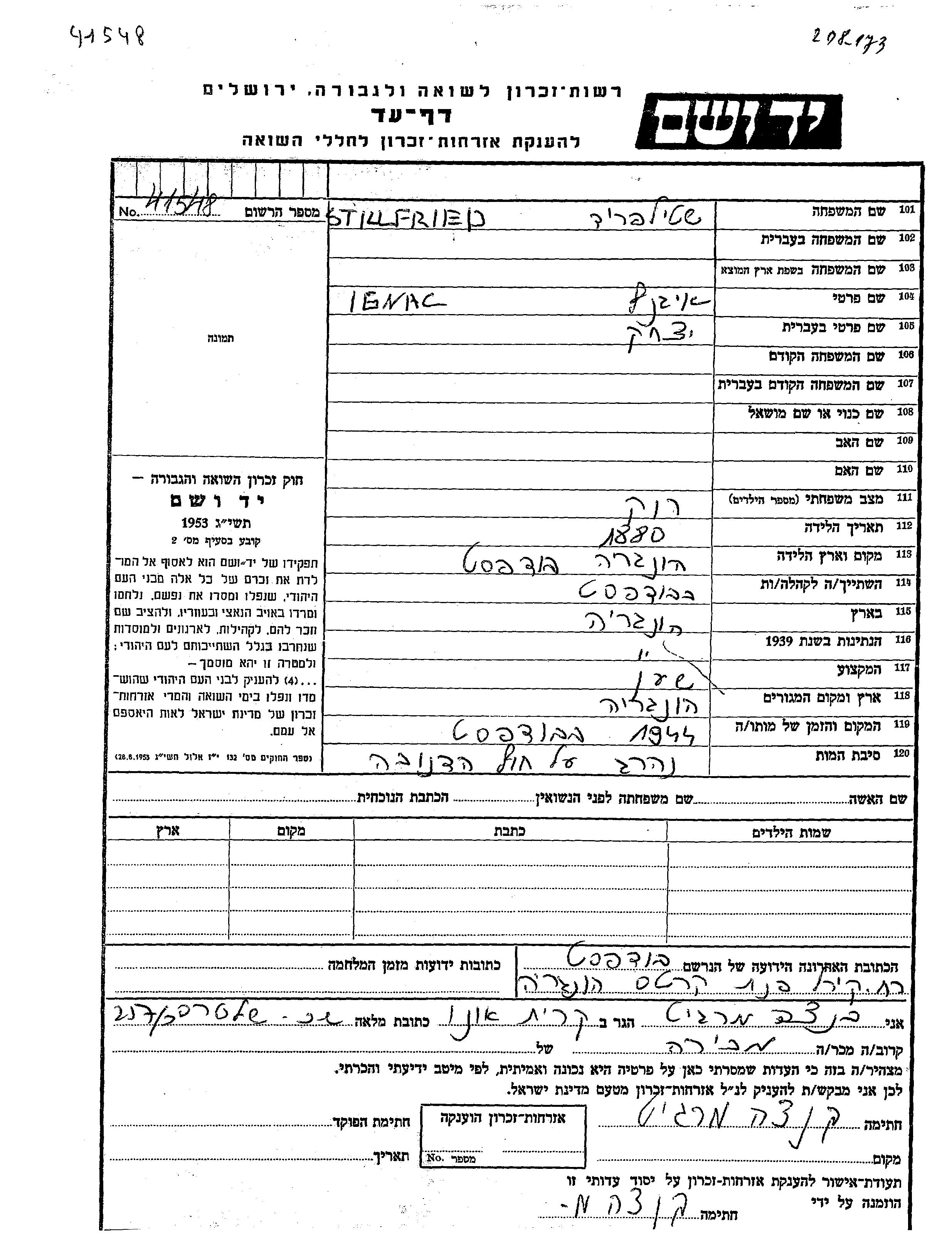 Яд Вашем - Листы свидетельских показаний Мемориального фонда