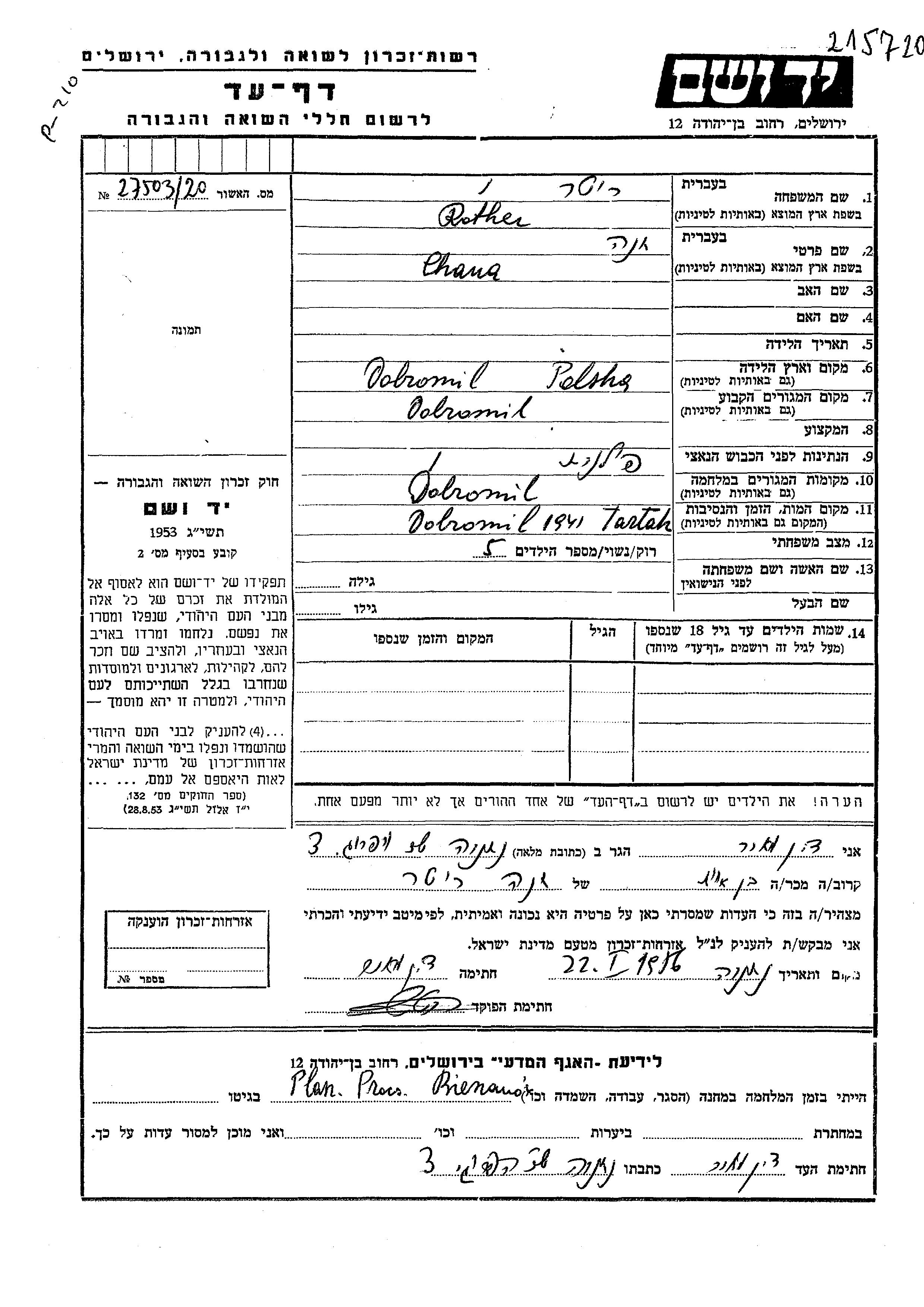 Ротер Хана Добромиль, Польша Лист свидетельских показаний