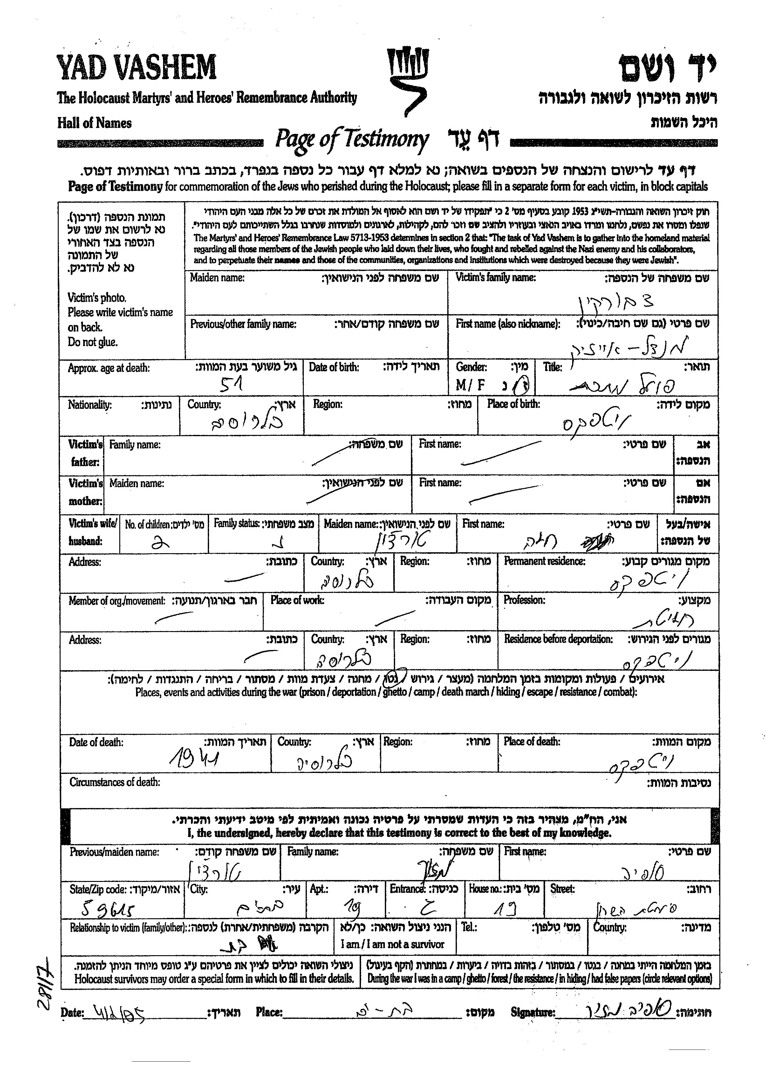 Яд Вашем - Листы свидетельских показаний Мемориального фонда