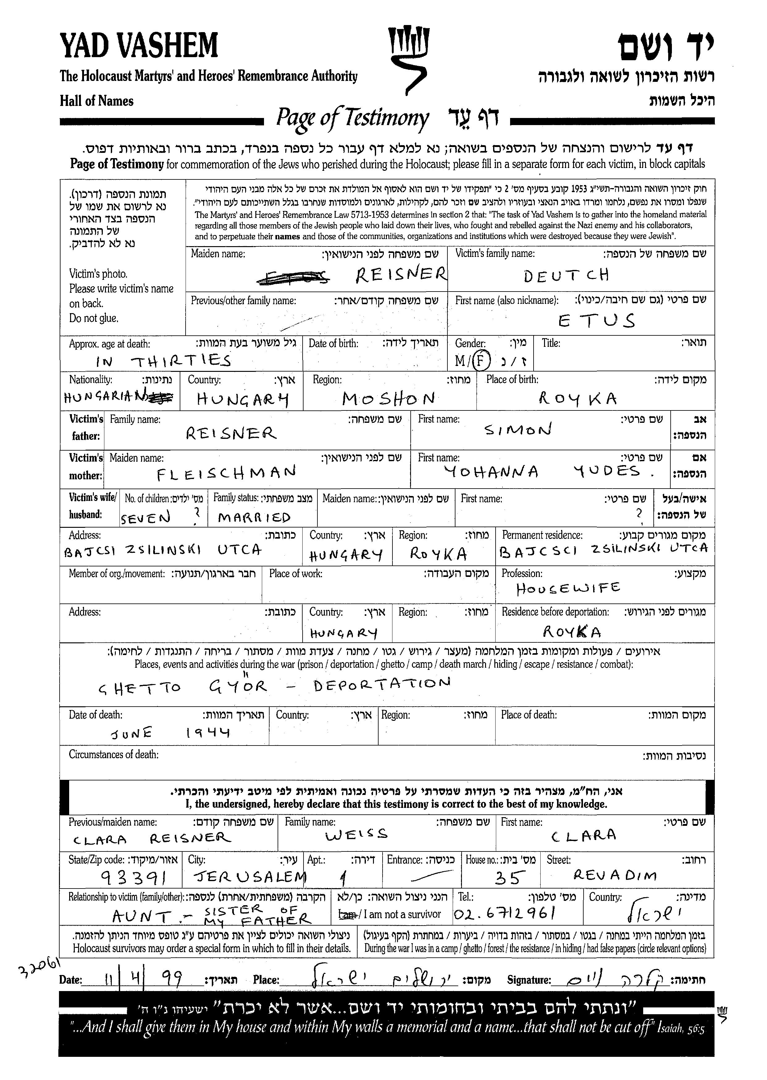 Дойч Этуш Райка, Венгрия Лист свидетельских показаний