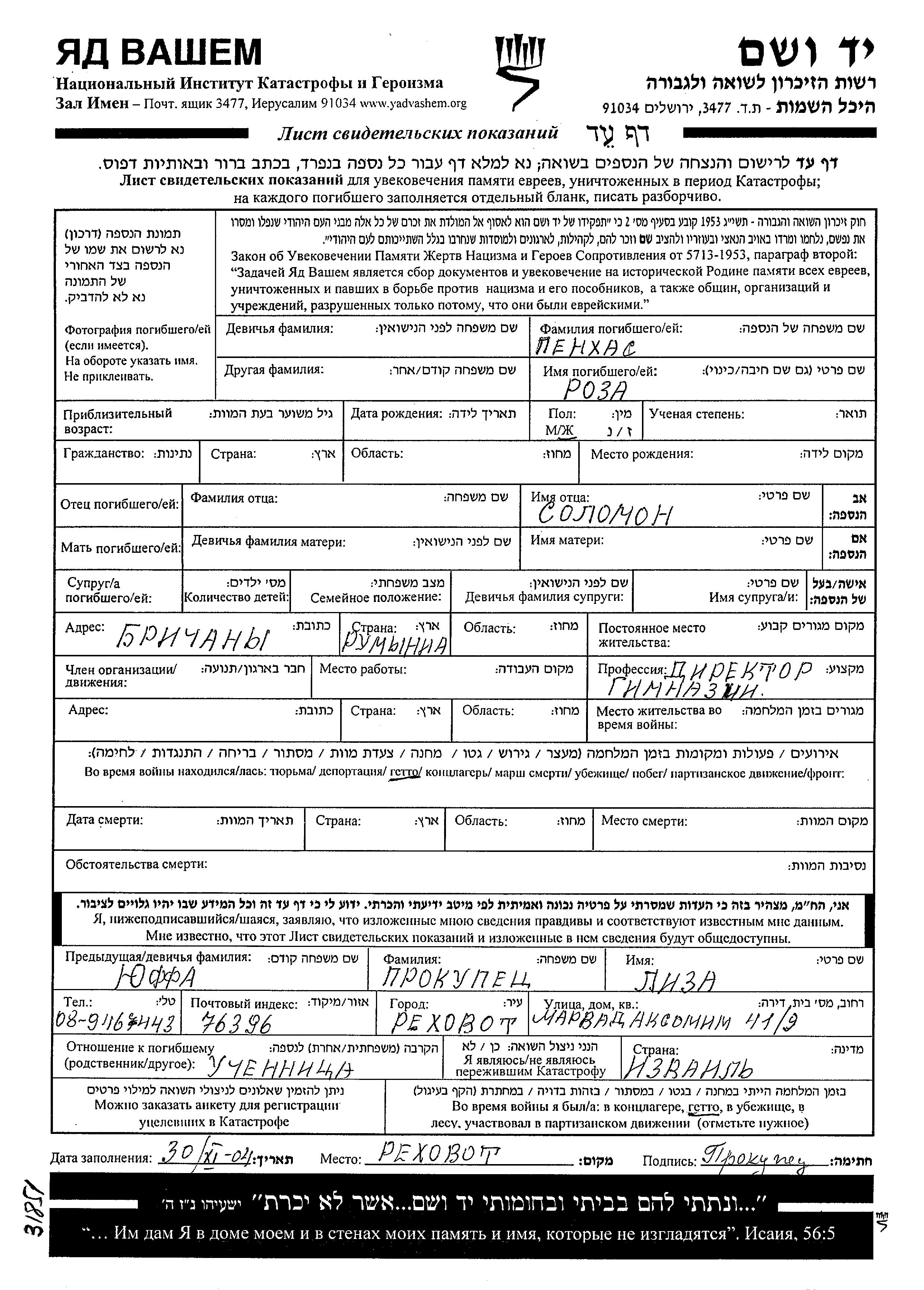 Яд Вашем - Листы свидетельских показаний Мемориального фонда