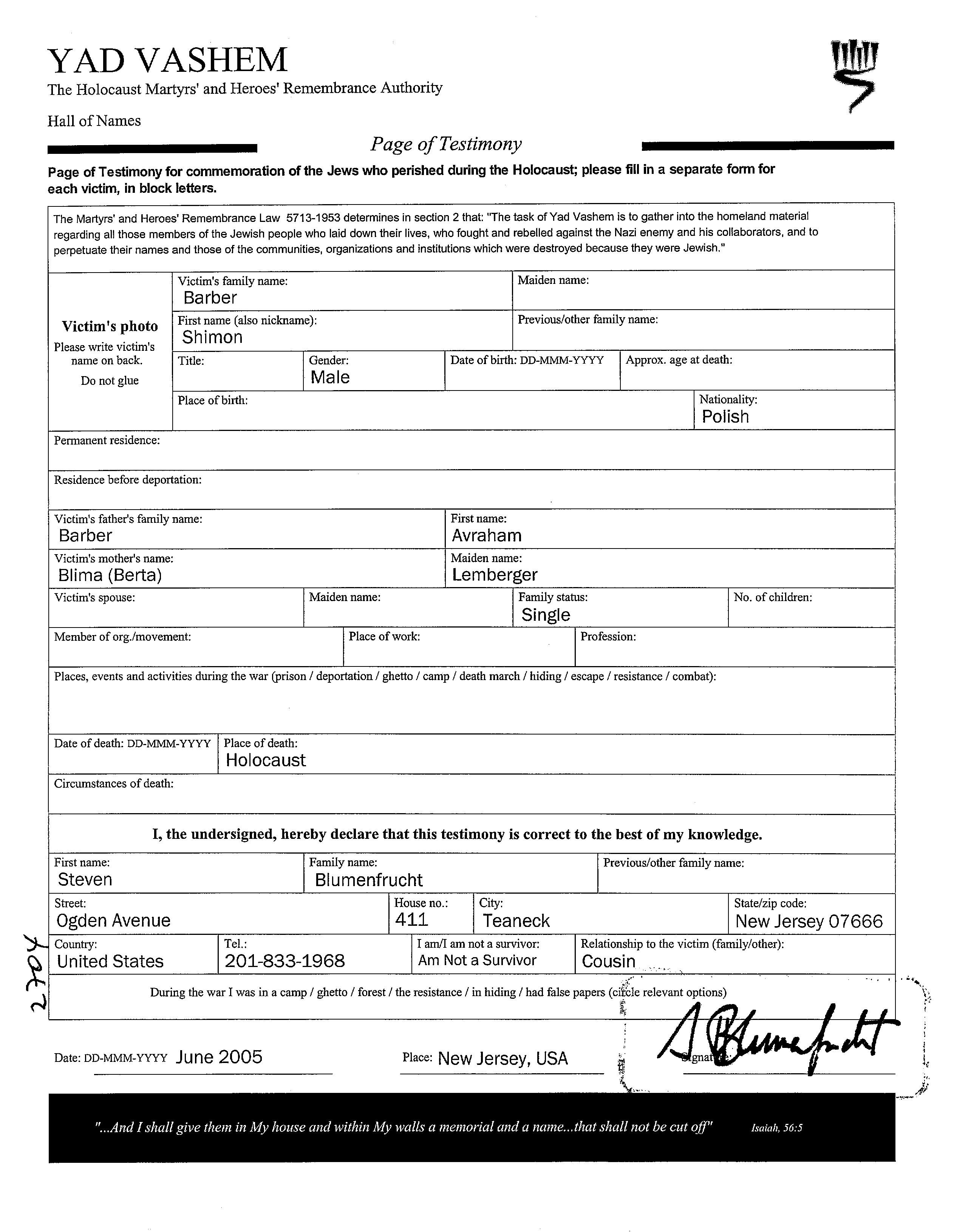 Поиск подателя Листа свидетельских показаний. Поиск по любому имени, включая уменьшительное или прозвище