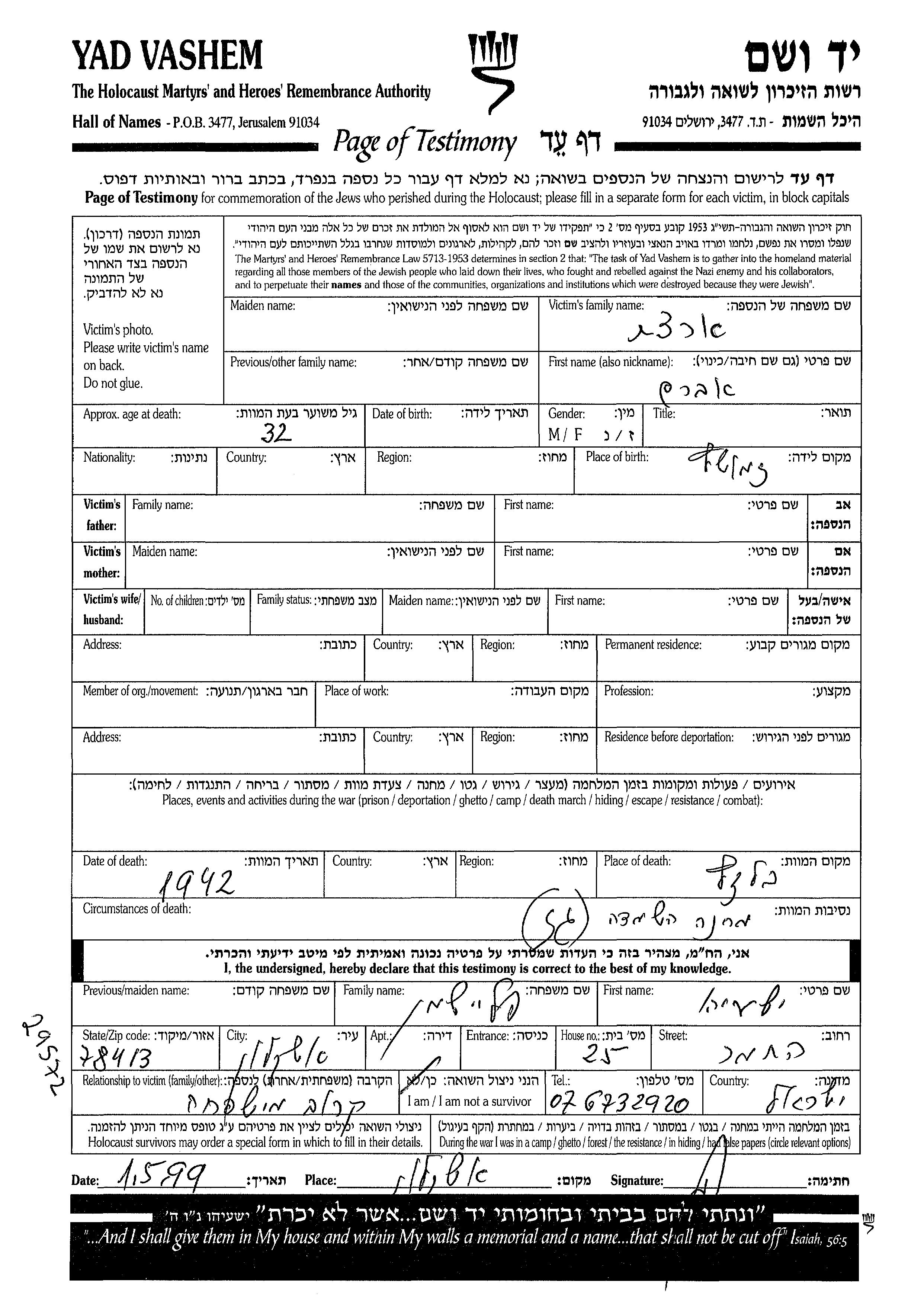 Яд Вашем - Листы свидетельских показаний Мемориального фонда