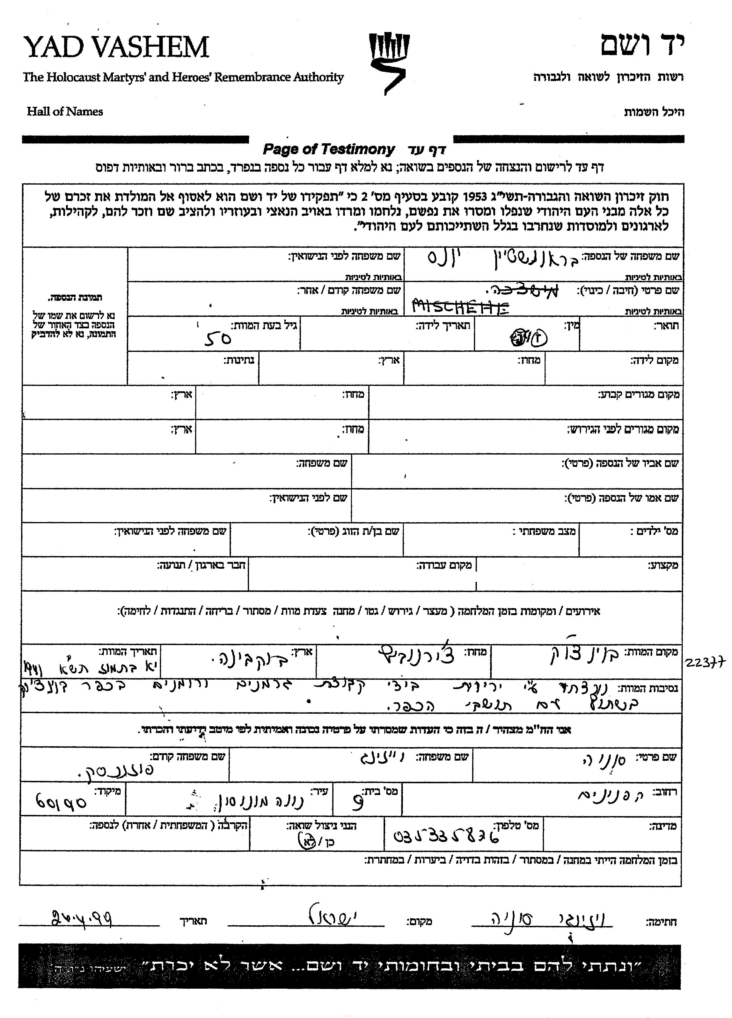 Яд Вашем - Листы свидетельских показаний Мемориального фонда