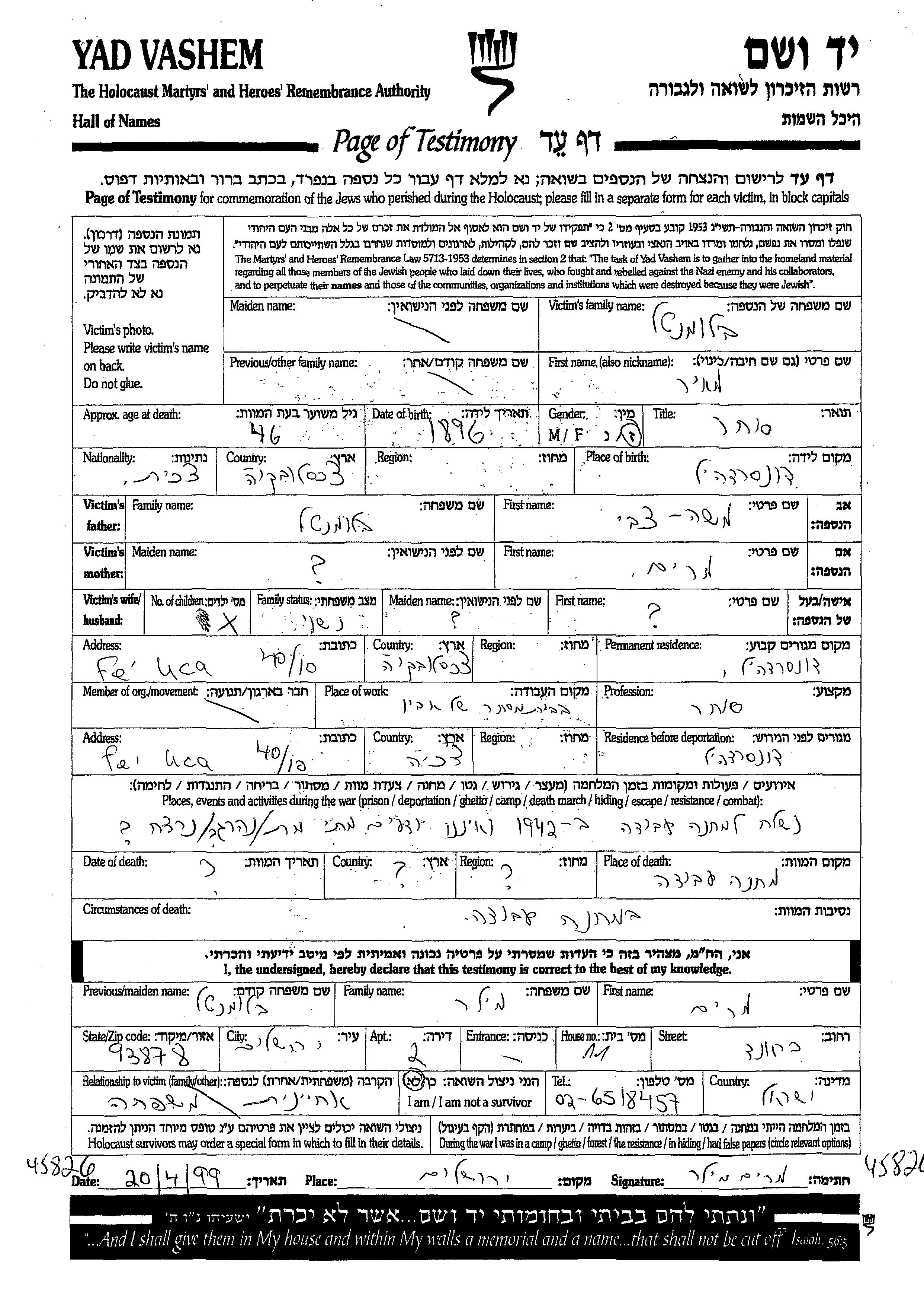 Яд Вашем - Листы свидетельских показаний Мемориального фонда