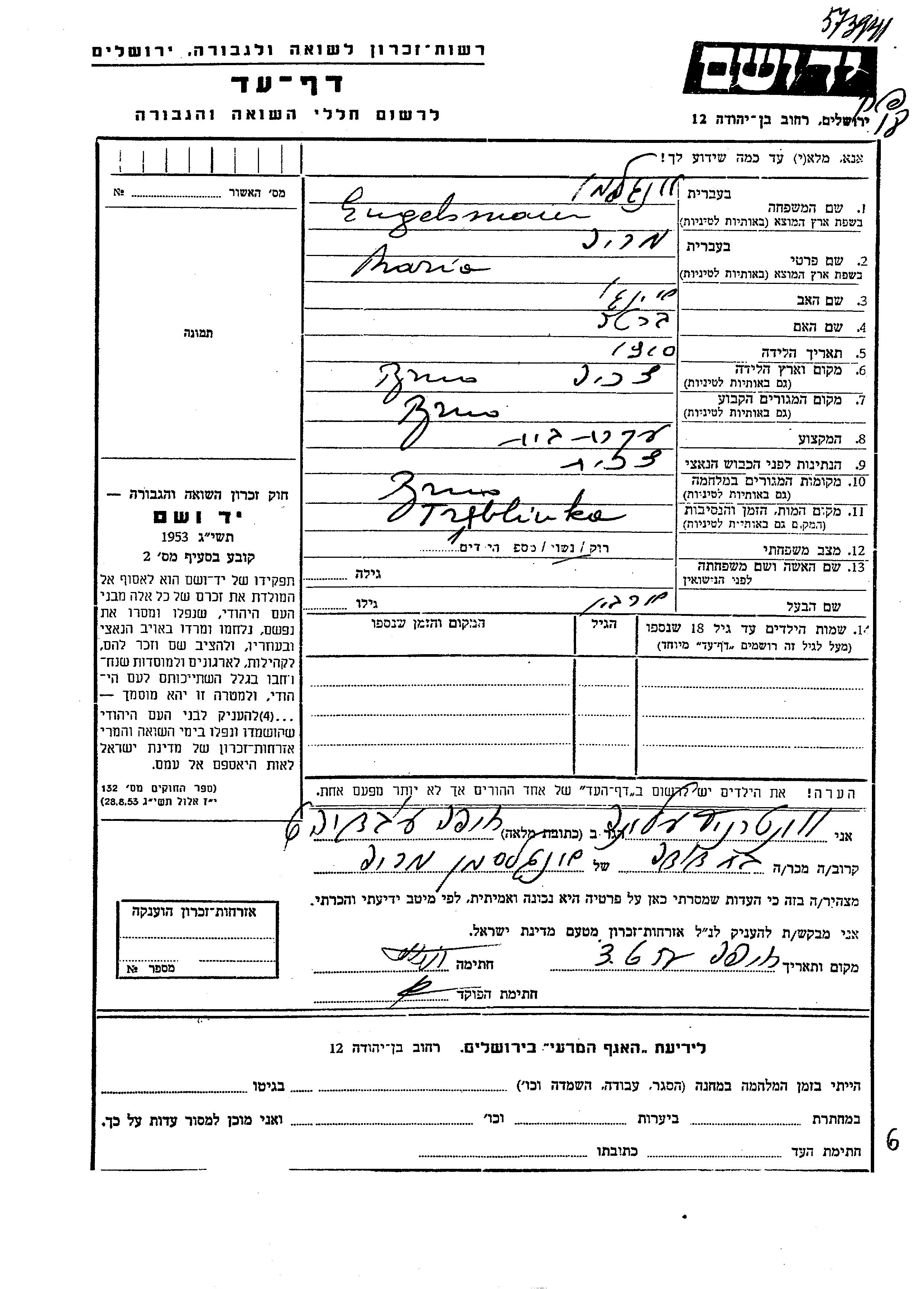 Яд Вашем - Листы свидетельских показаний Мемориального фонда