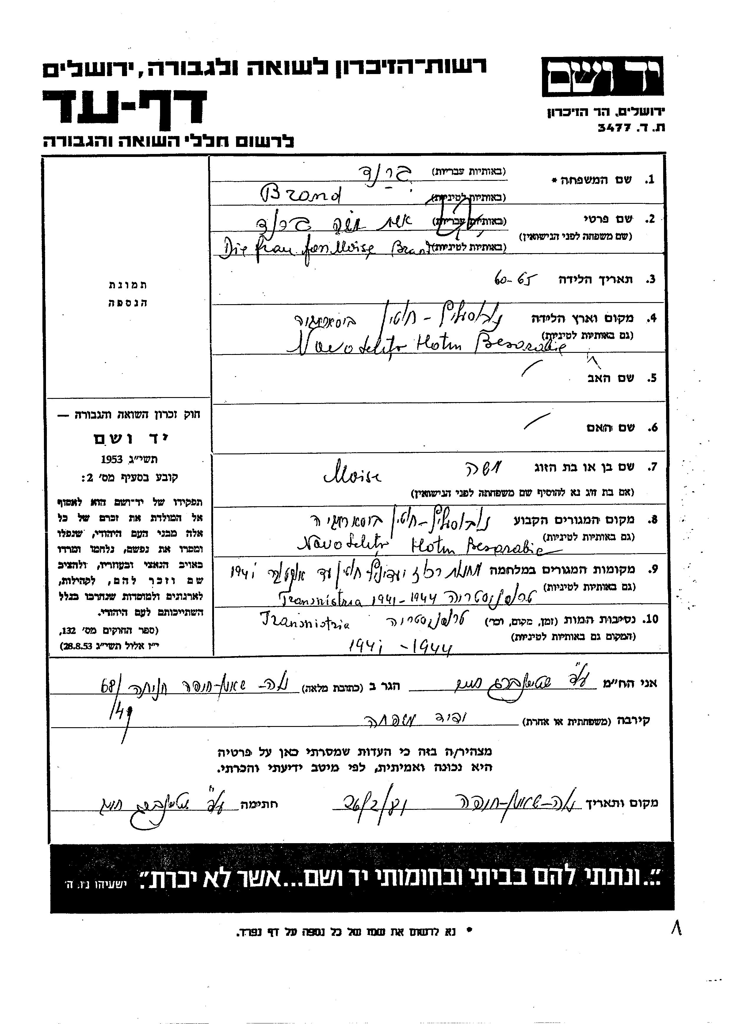 Яд Вашем - Листы свидетельских показаний Мемориального фонда