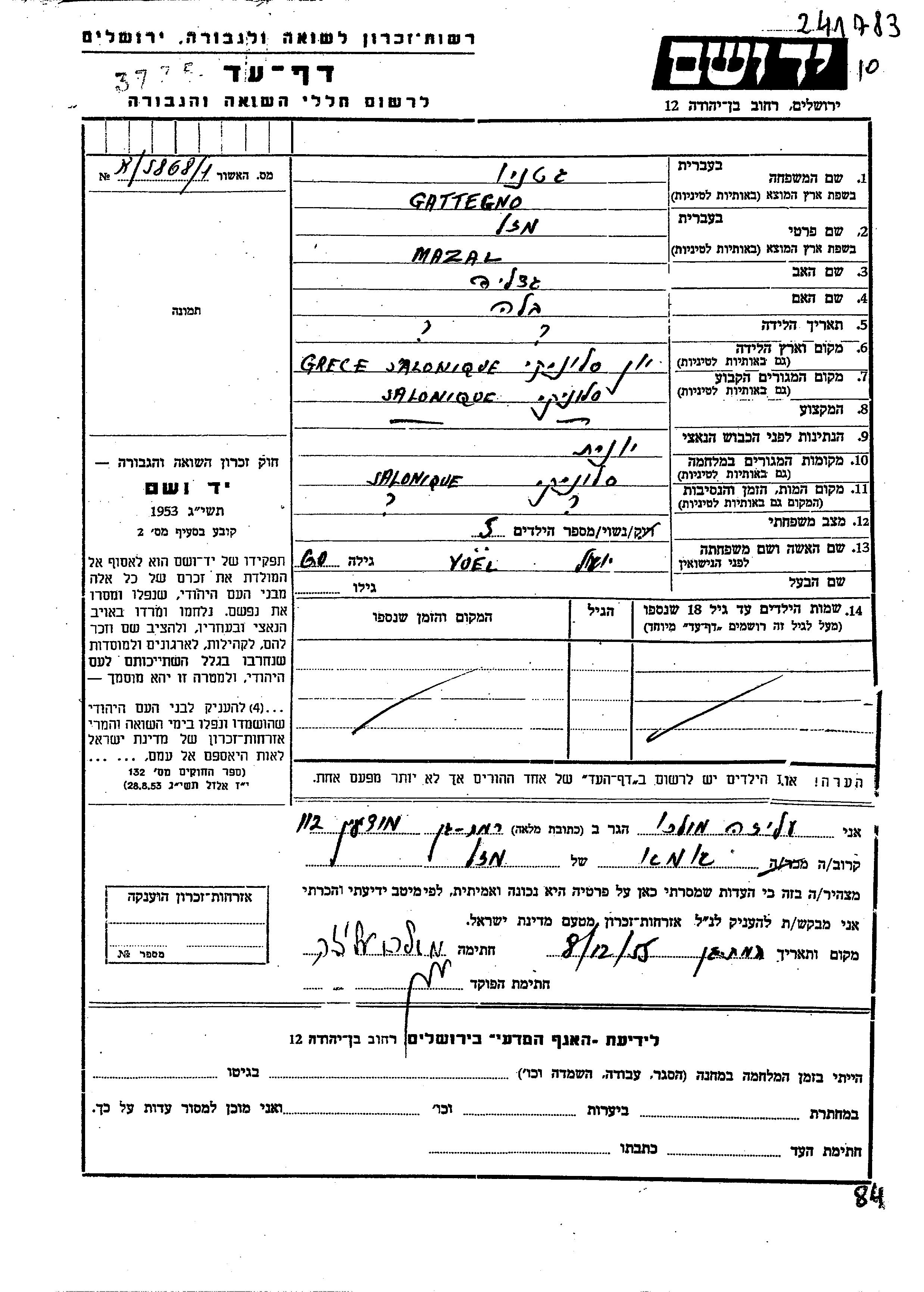 Гатенио Мазаль Салоники, Греция Лист свидетельских показаний