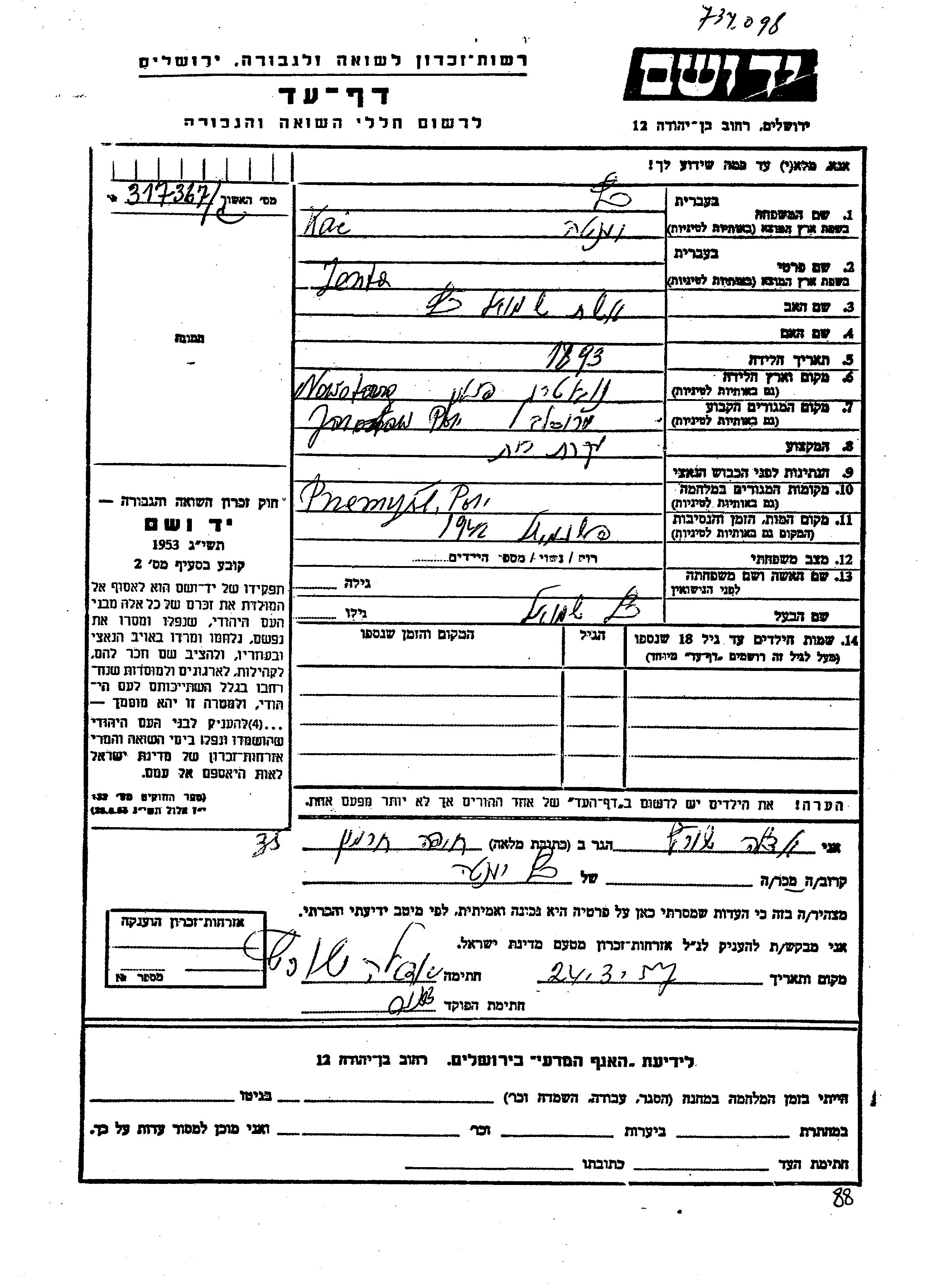 Яд Вашем - Листы свидетельских показаний Мемориального фонда