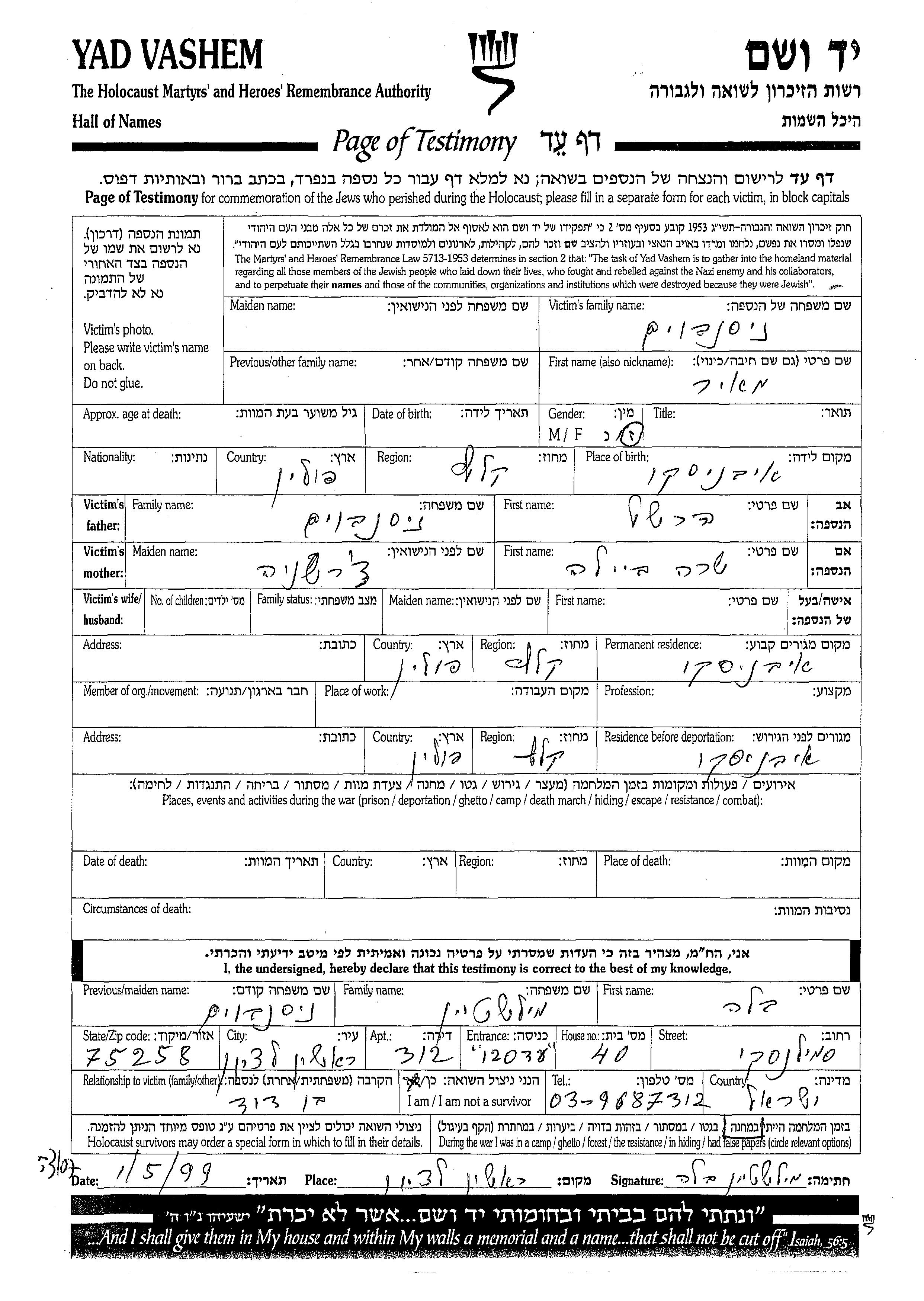 Яд Вашем - Листы свидетельских показаний Мемориального фонда