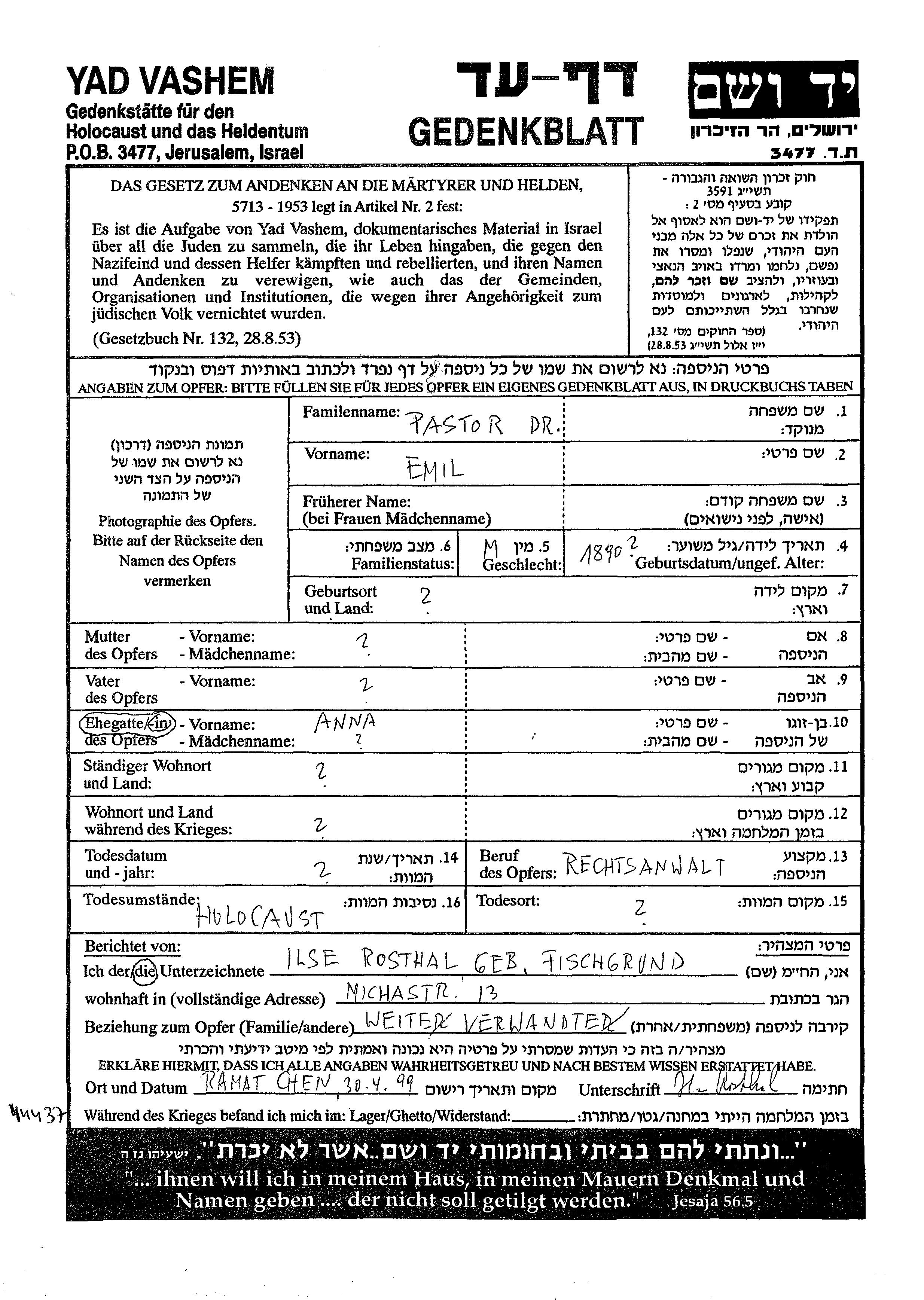 Яд Вашем - Листы свидетельских показаний Мемориального фонда