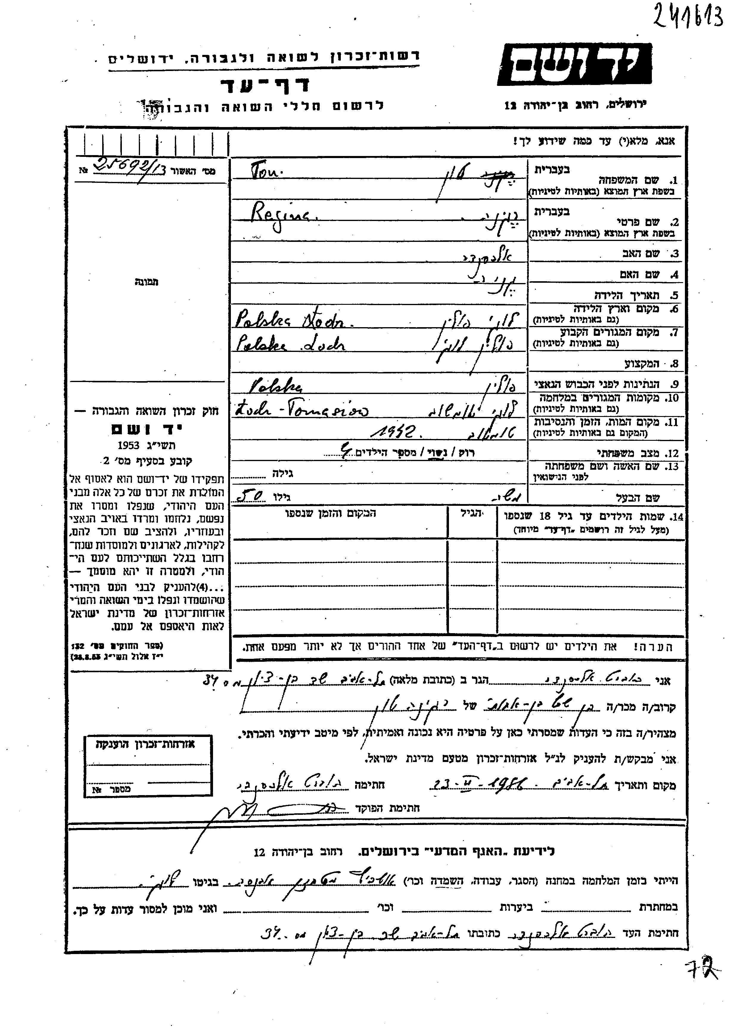 Яд Вашем - Листы свидетельских показаний Мемориального фонда
