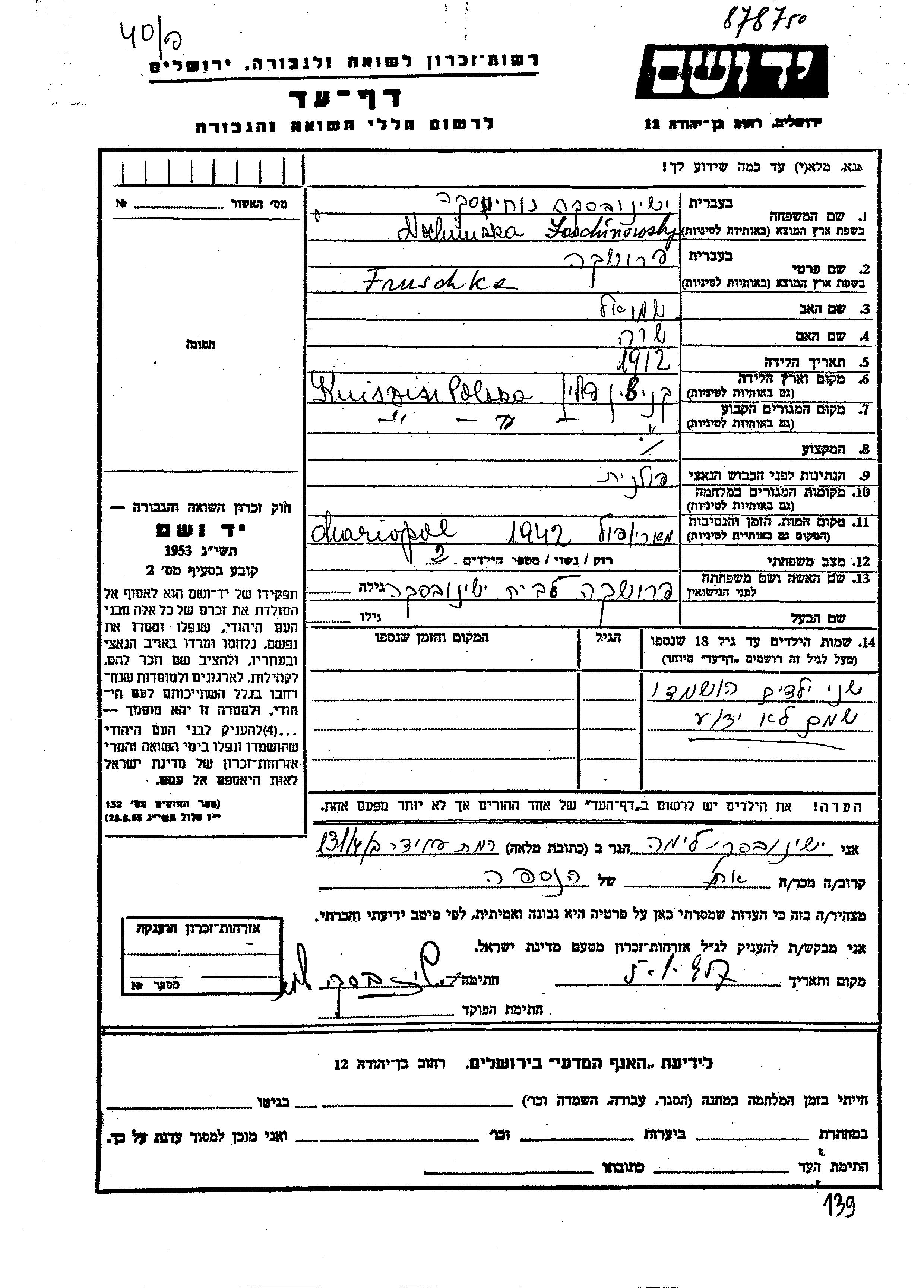 Яд Вашем - Листы свидетельских показаний Мемориального фонда