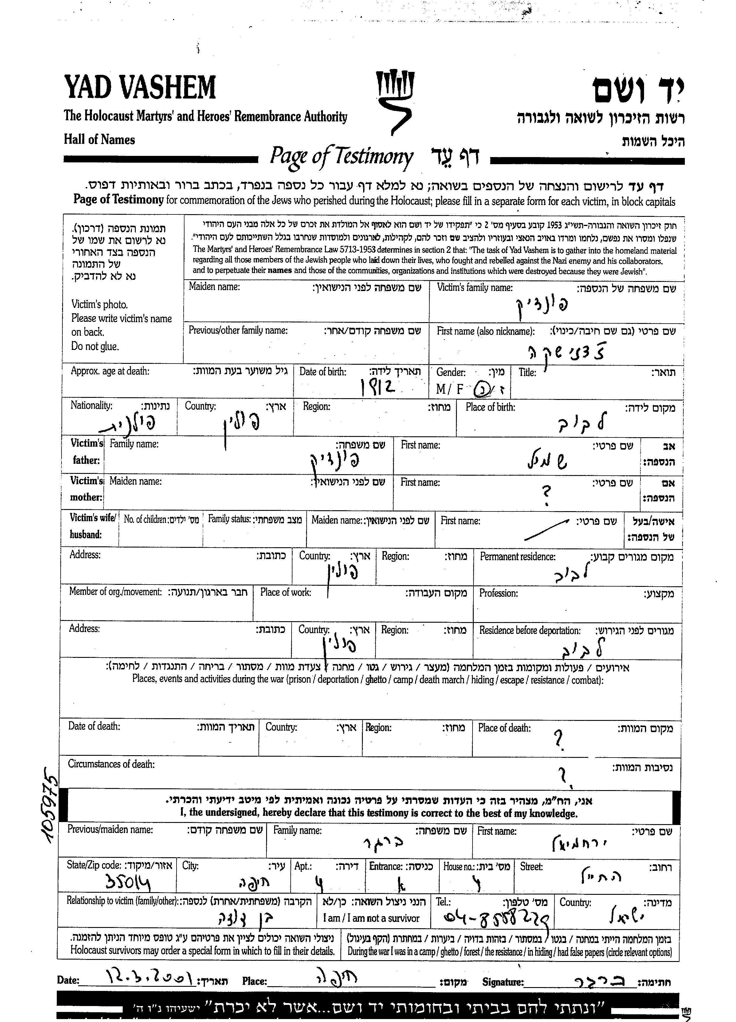 Яд Вашем - Листы свидетельских показаний Мемориального фонда