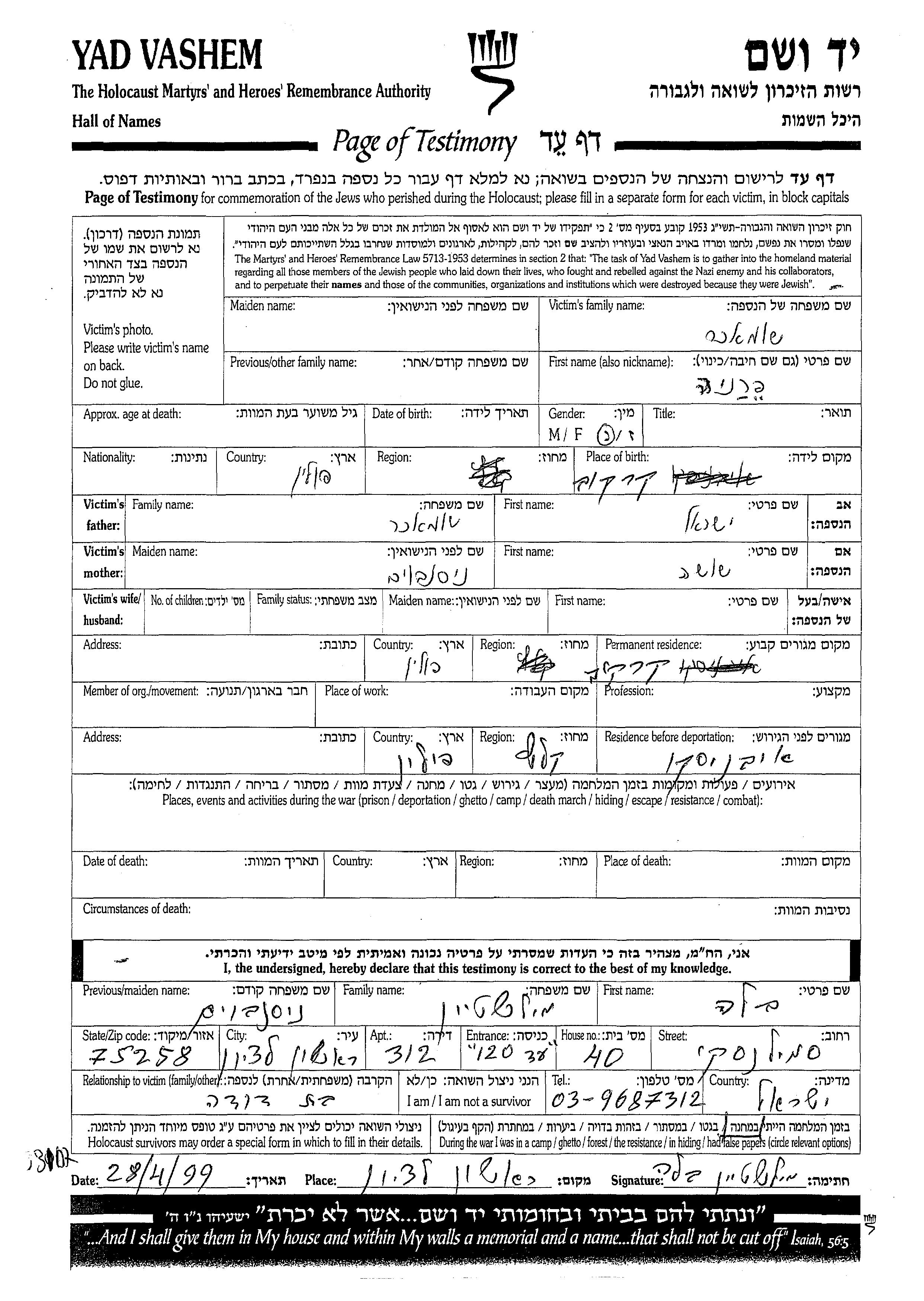 Яд Вашем - Листы свидетельских показаний Мемориального фонда